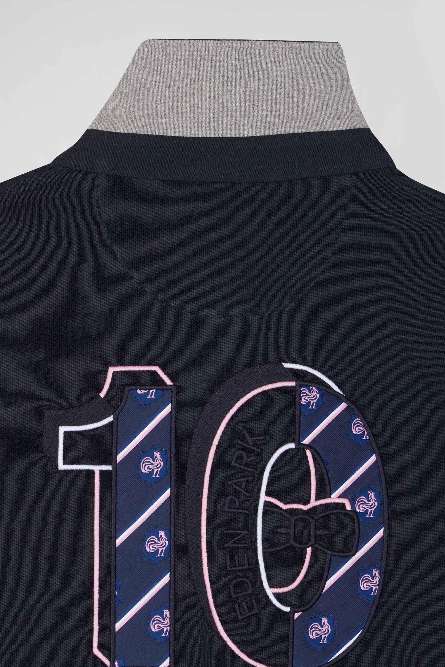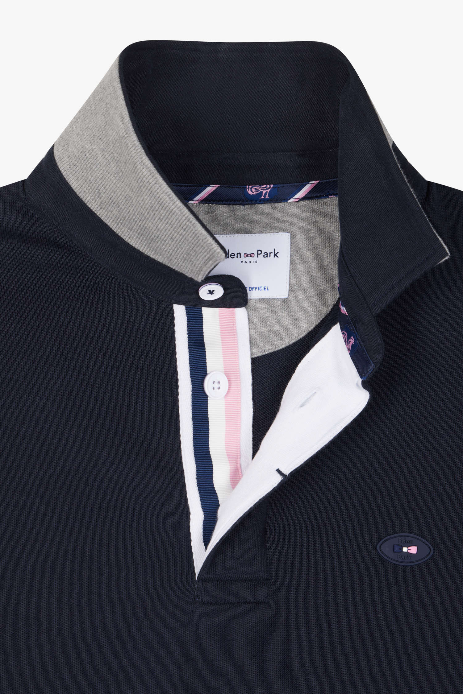 This men's jersey pays tribute to French sporting elegance, combining a timeless design with distinctive details on the emblem of the XV de France, of which Eden Park is the fashion partner. The jersey features the emblematic cockerel of the XV de France, finely embroidered and worked into a tie fabric application. It's the ideal companion for any men's wardrobe, pairing perfectly with casual jeans or chino pants.
