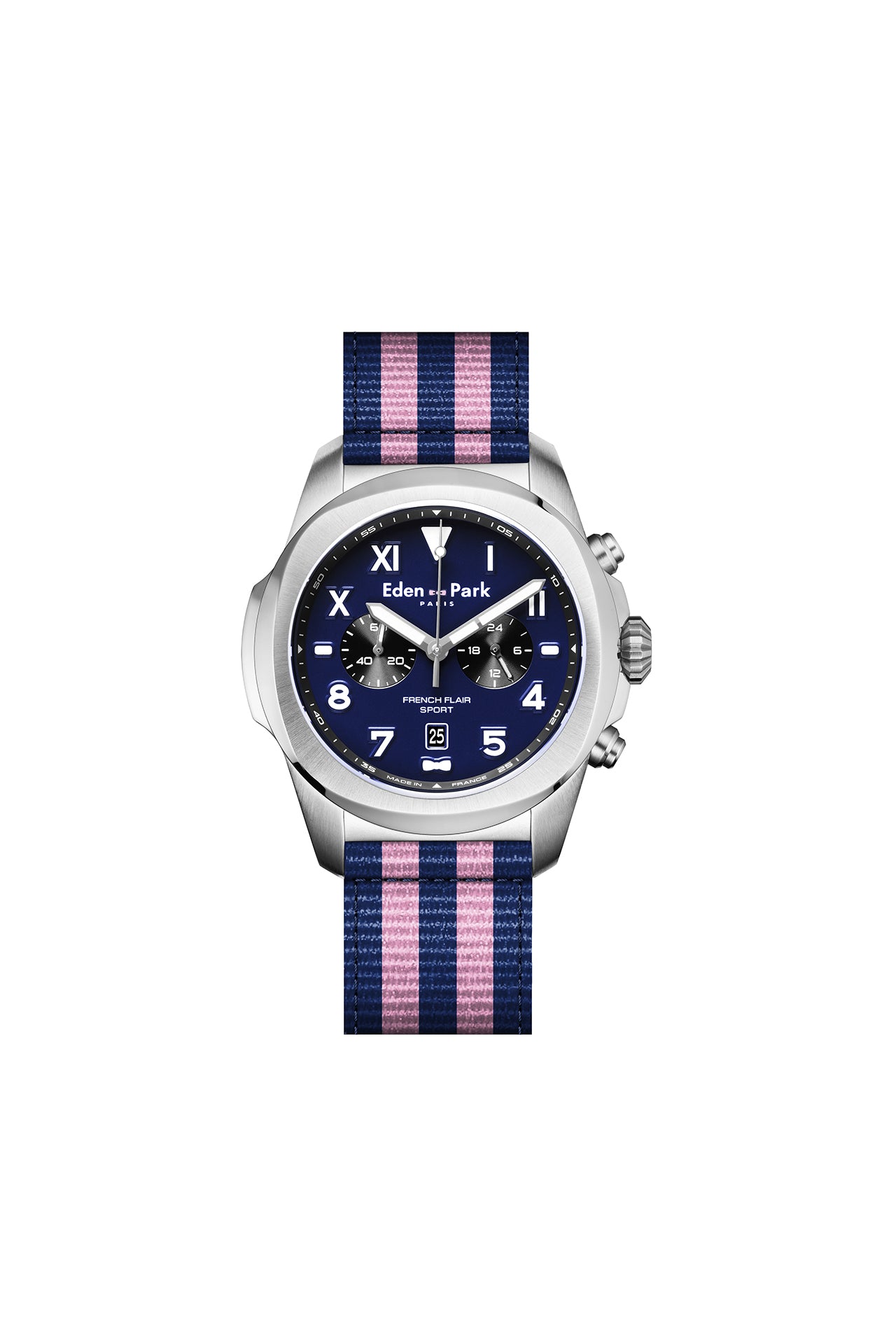 Montre à quartz chronographe fond bleu bracelet NATO rayé