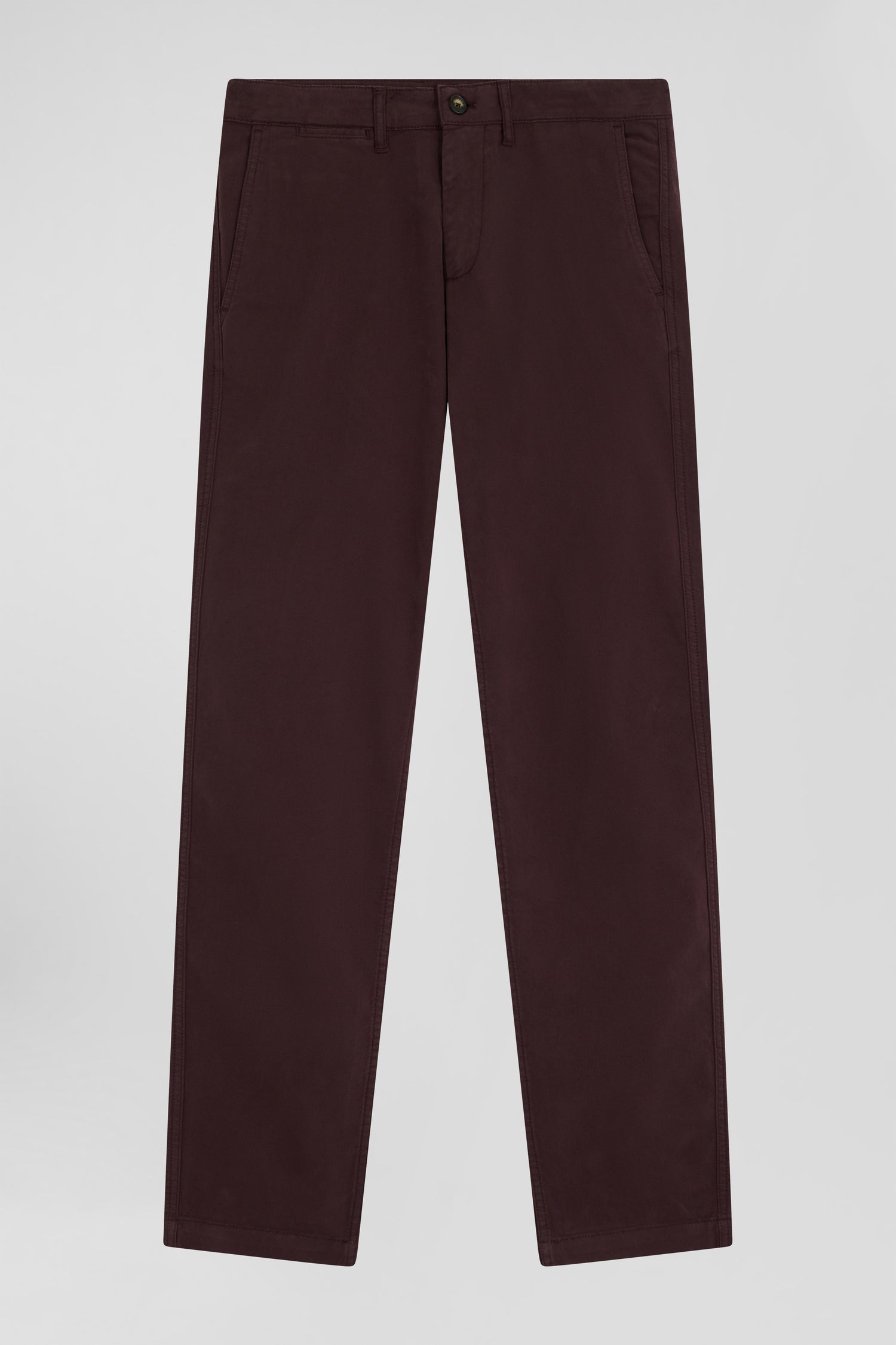 Regular burgundy chino trousers in stretch cotton gabardine