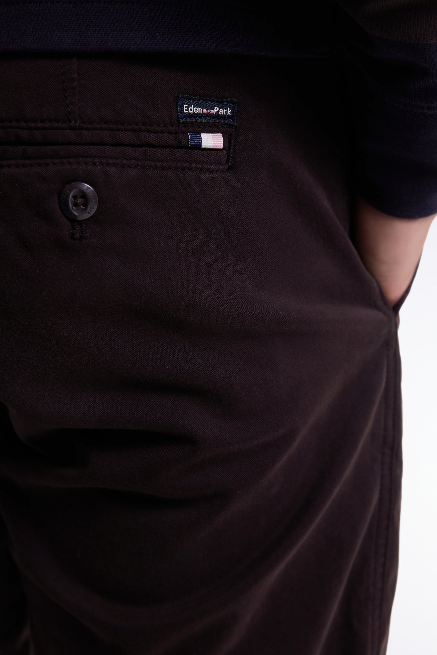 Designed to combine style and ease, this stretch cotton chino offers a structured silhouette without ever compromising comfort. Its straight, crease-free cut is sleek and versatile, making it an everyday ally both