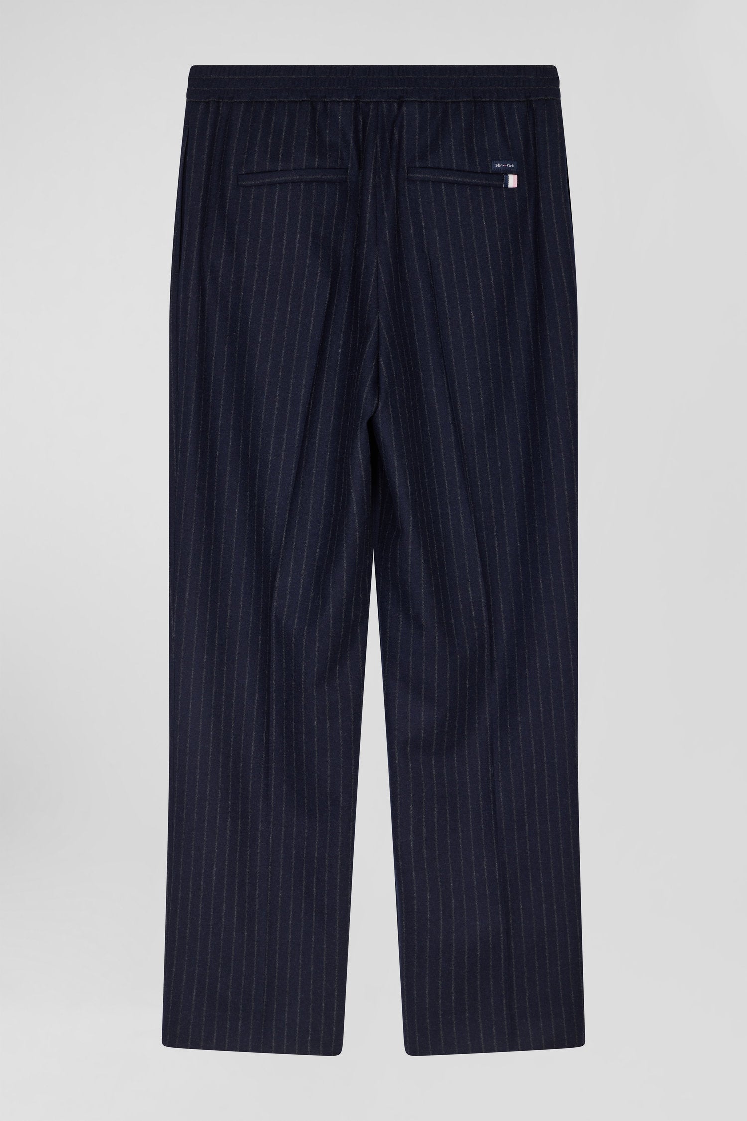 Modern navy blue striped wool trousers