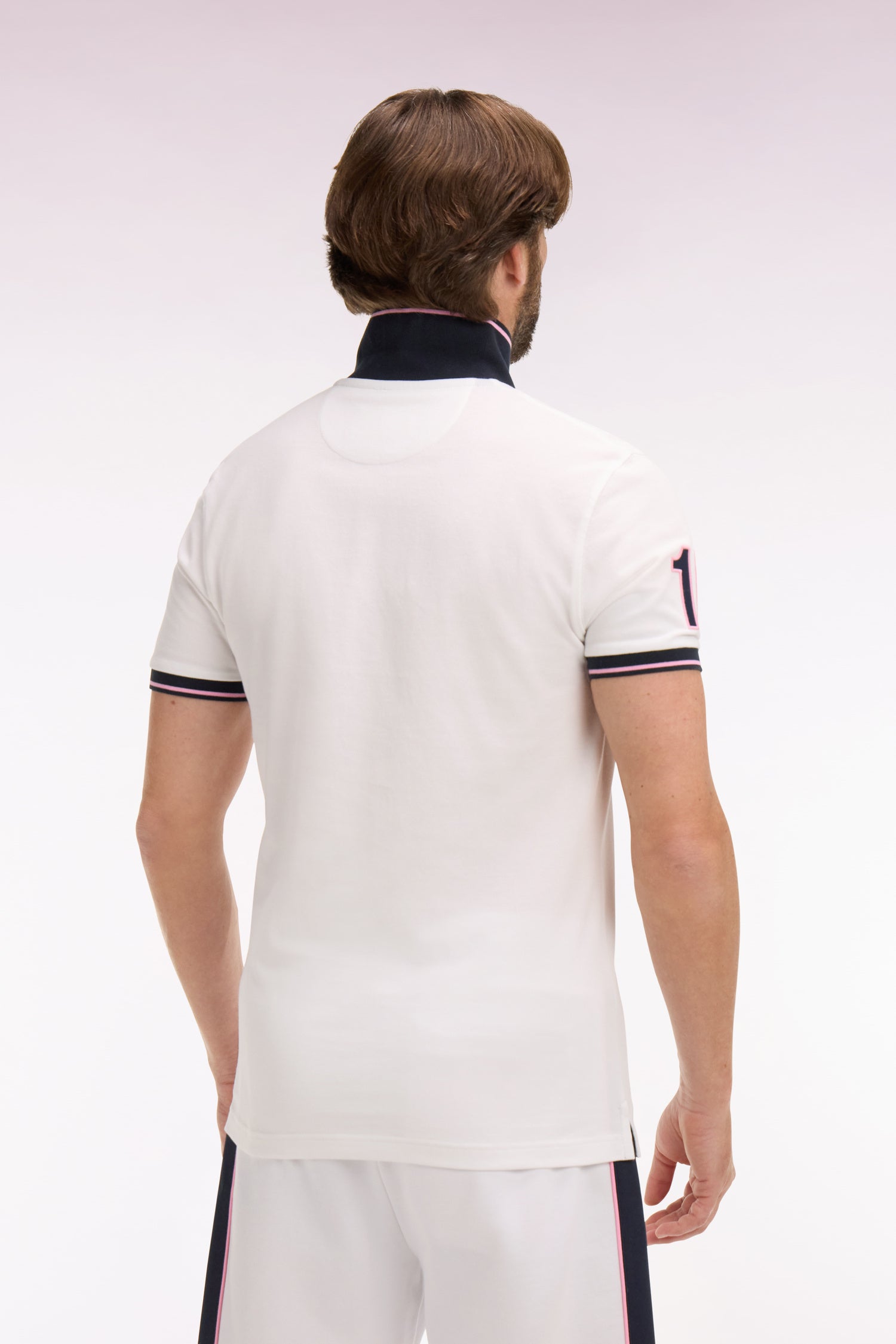 Our two straight-cut men's polo shirts, available in white or navy, embody the essence of the wardrobe Eden Park. Each model features 10 embroidery on the sleeve, a reminder of the historic jersey worn by Franck Mesnel, the founder of the House. The contrasting edge of this sport-chic embroidery is echoed in edging on the outline of the polo collar and the sleeve edges. An essential piece, celebrating the sporting heritage and elegance of our House.