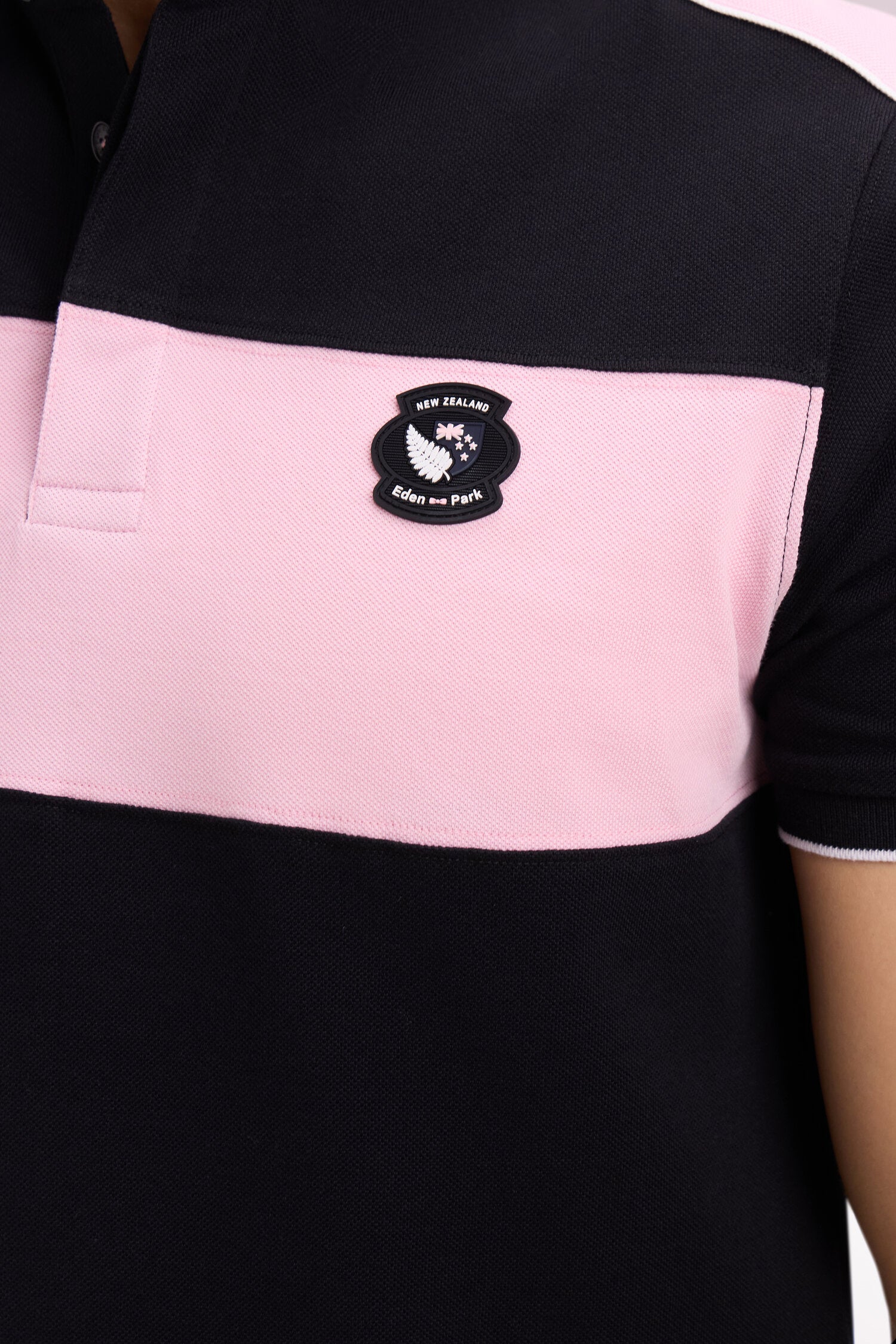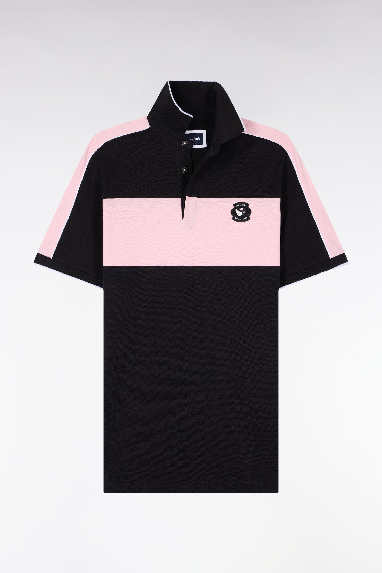 Polo à manches courtes en coton noir et rose New Zealand coupe regular