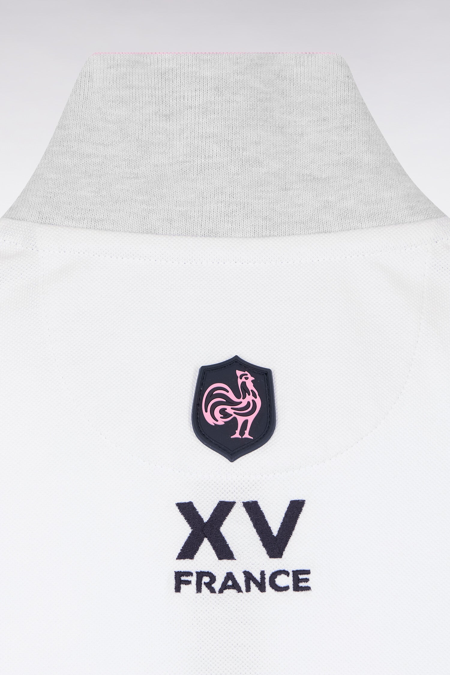 Polo à manches courtes XV de France en piqué coton blanc découpes marine