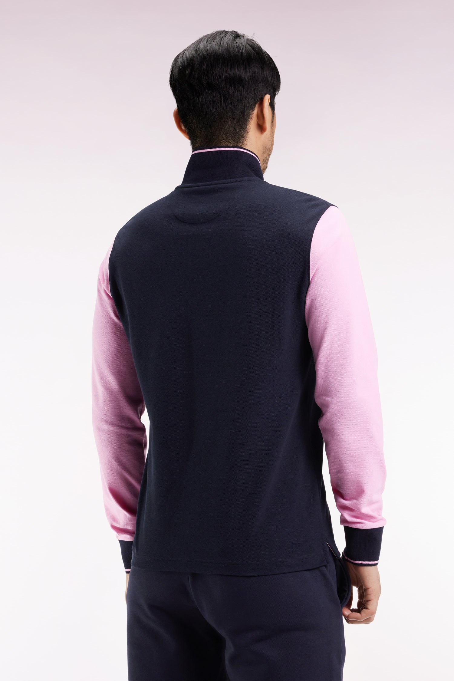 Long-sleeved polo shirt in two-tone pink cotton piqué with Eden Park logo