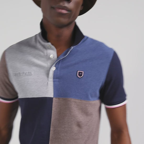 Our cut and sewn short-sleeved polo shirt, in which four colors are combined in a sophisticated play of dials, is a must-have for men's wardrobes. Available in light blue and dark blue mottled, this men's polo shirt in comfortable cotton piqué offers a dynamic, modern touch to your silhouette. Designed for those who want to combine character and comfort, this polo is perfect for a casual yet distinctive look.