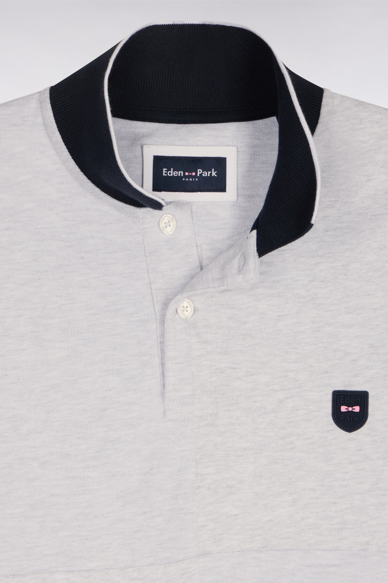 Polo manches courtes bicolore en coton gris clair à découpes coupe regular