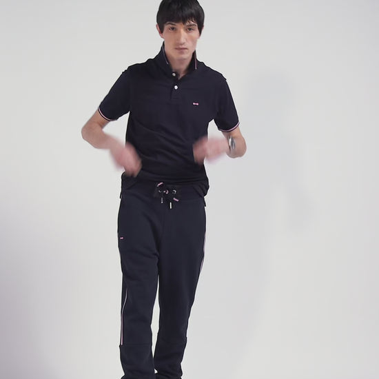 Regular navy blue mixed cotton jogging bottoms with striped trims