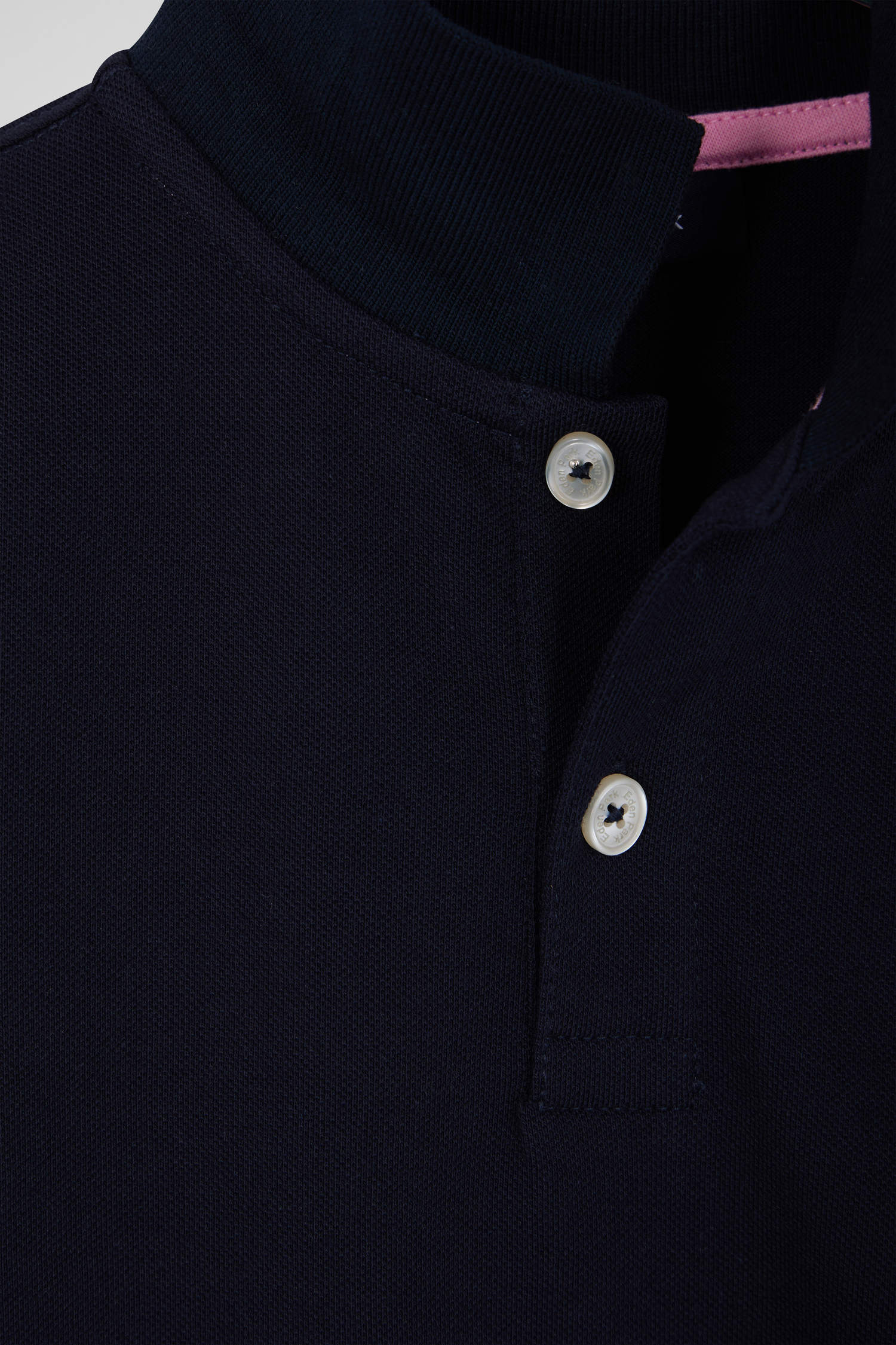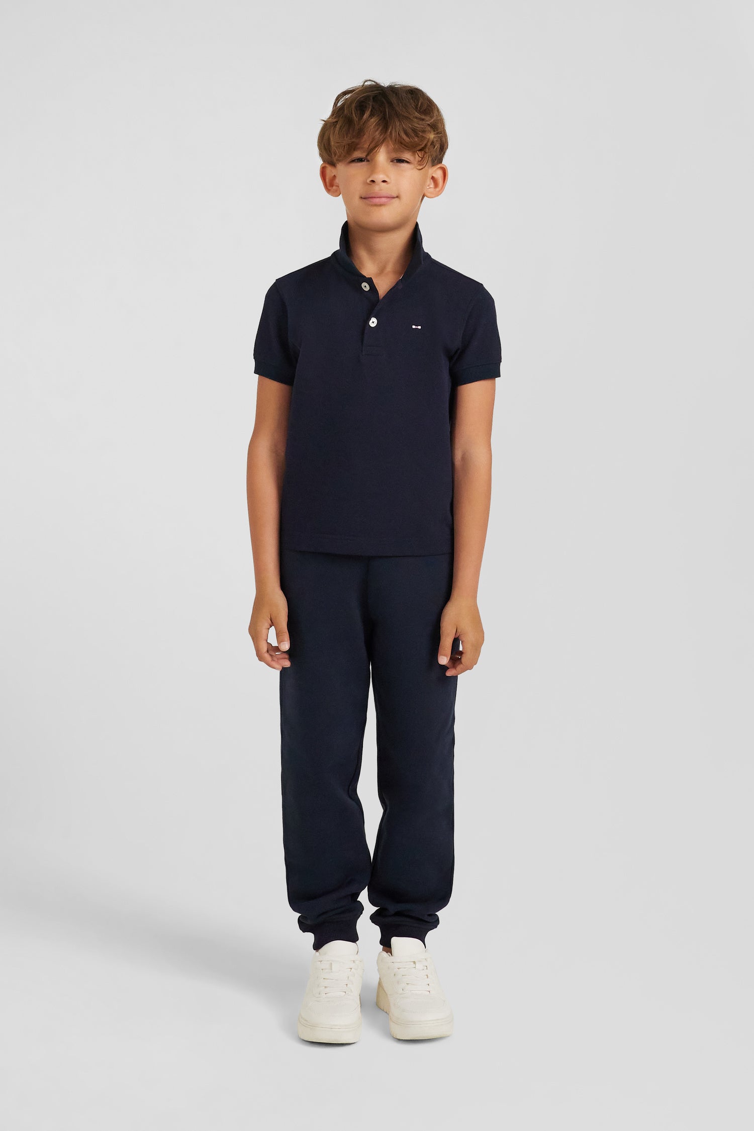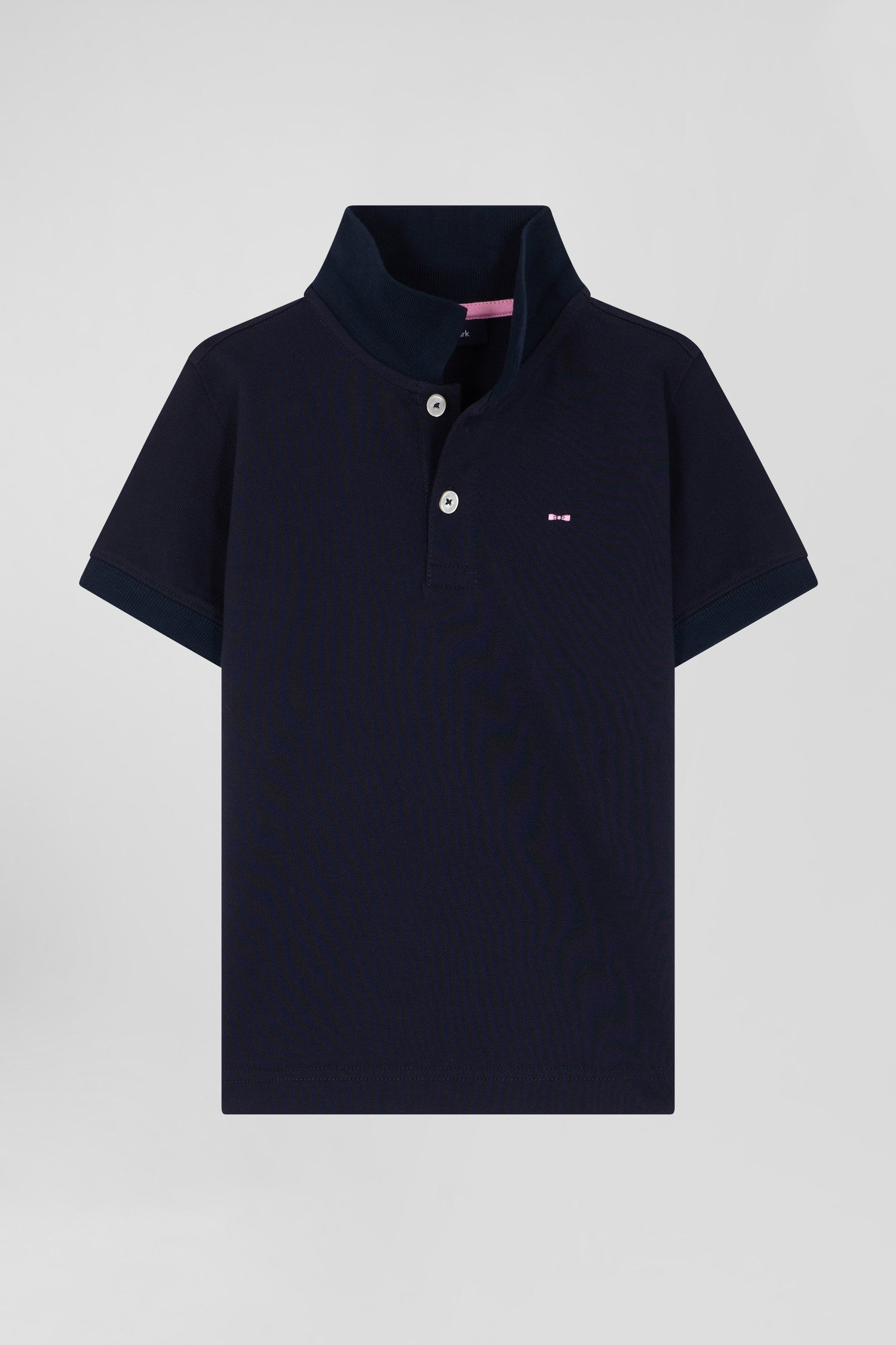 Treat your child to the timeless elegance of our plain navy blue cotton piqué polo shirt. With its classic collar and discreet buttons in the shape of a rugby ball, this polo is perfect for special occasions or as elegant everyday wear. A large embroidery on the back revisits our iconic bow tie emblem, which also adorns the chest.