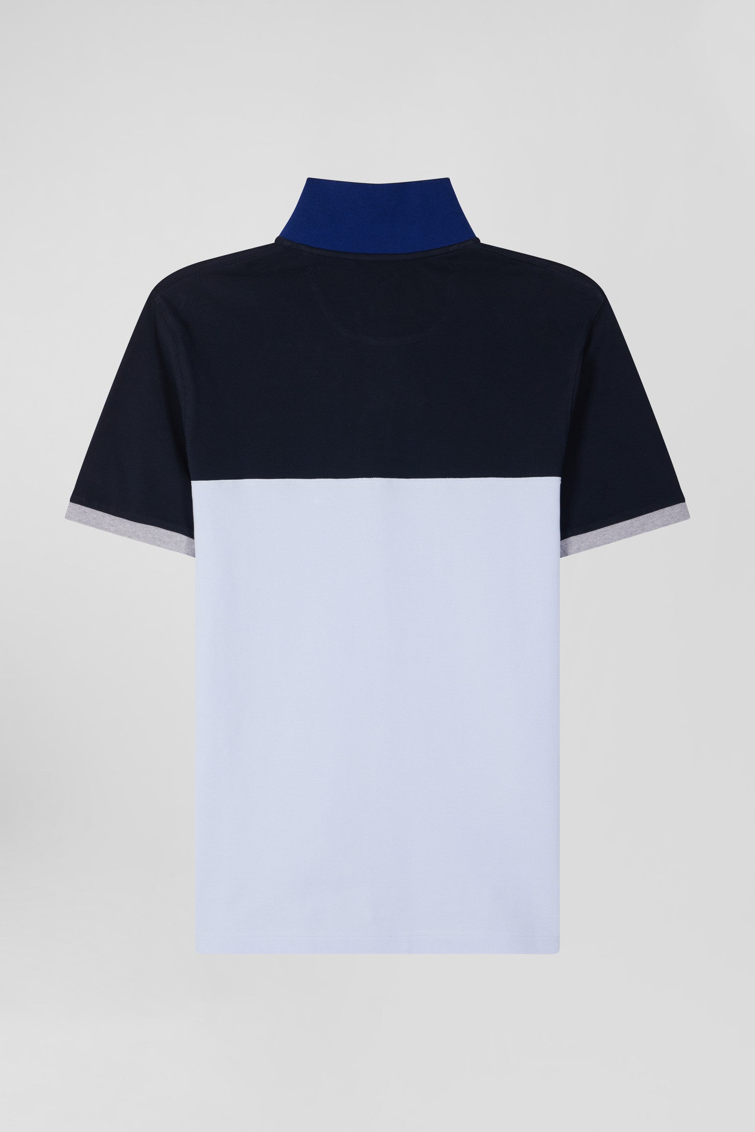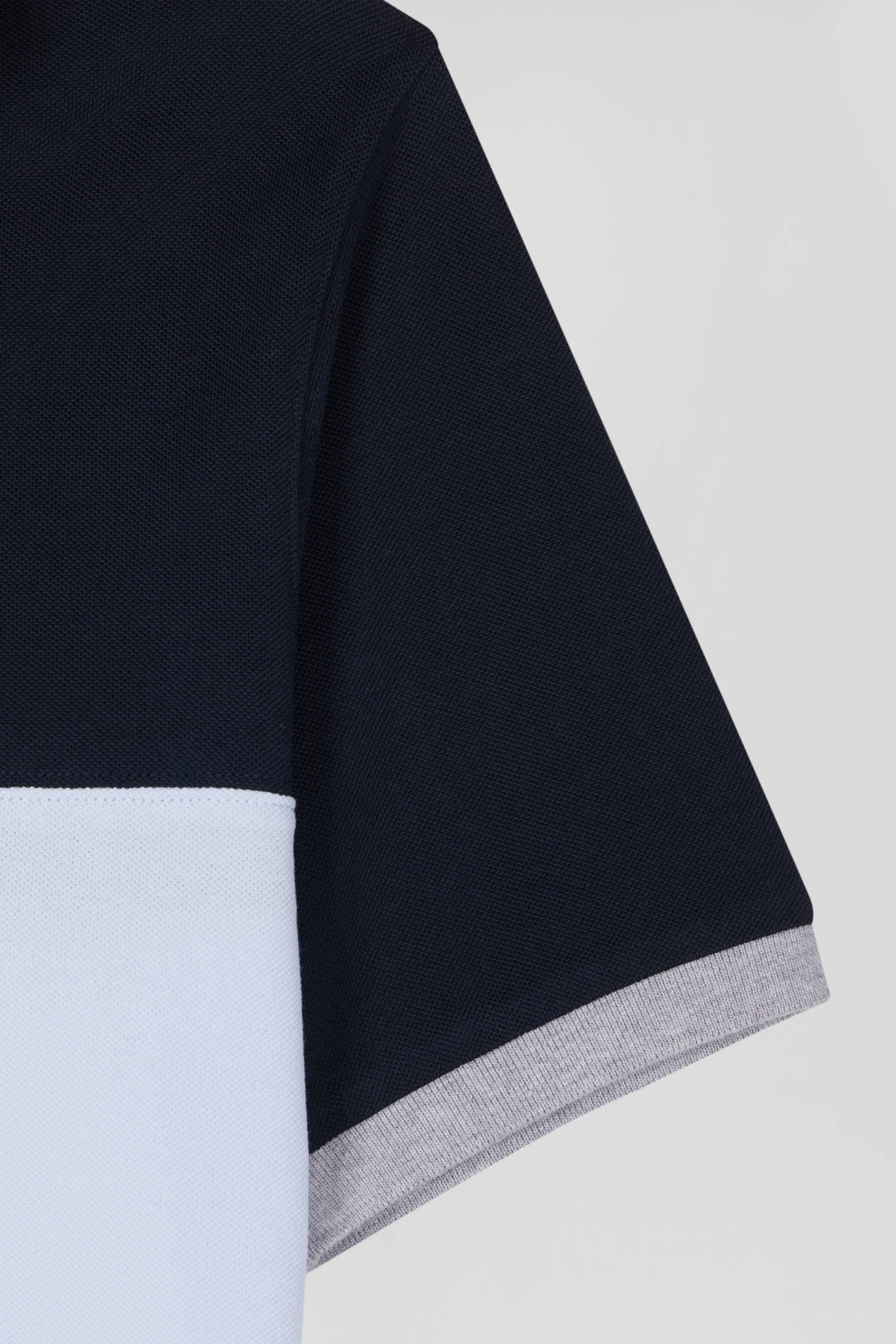 Regular sky blue short-sleeved cotton piqué polo shirt with bow tie embroidery and contrasting details