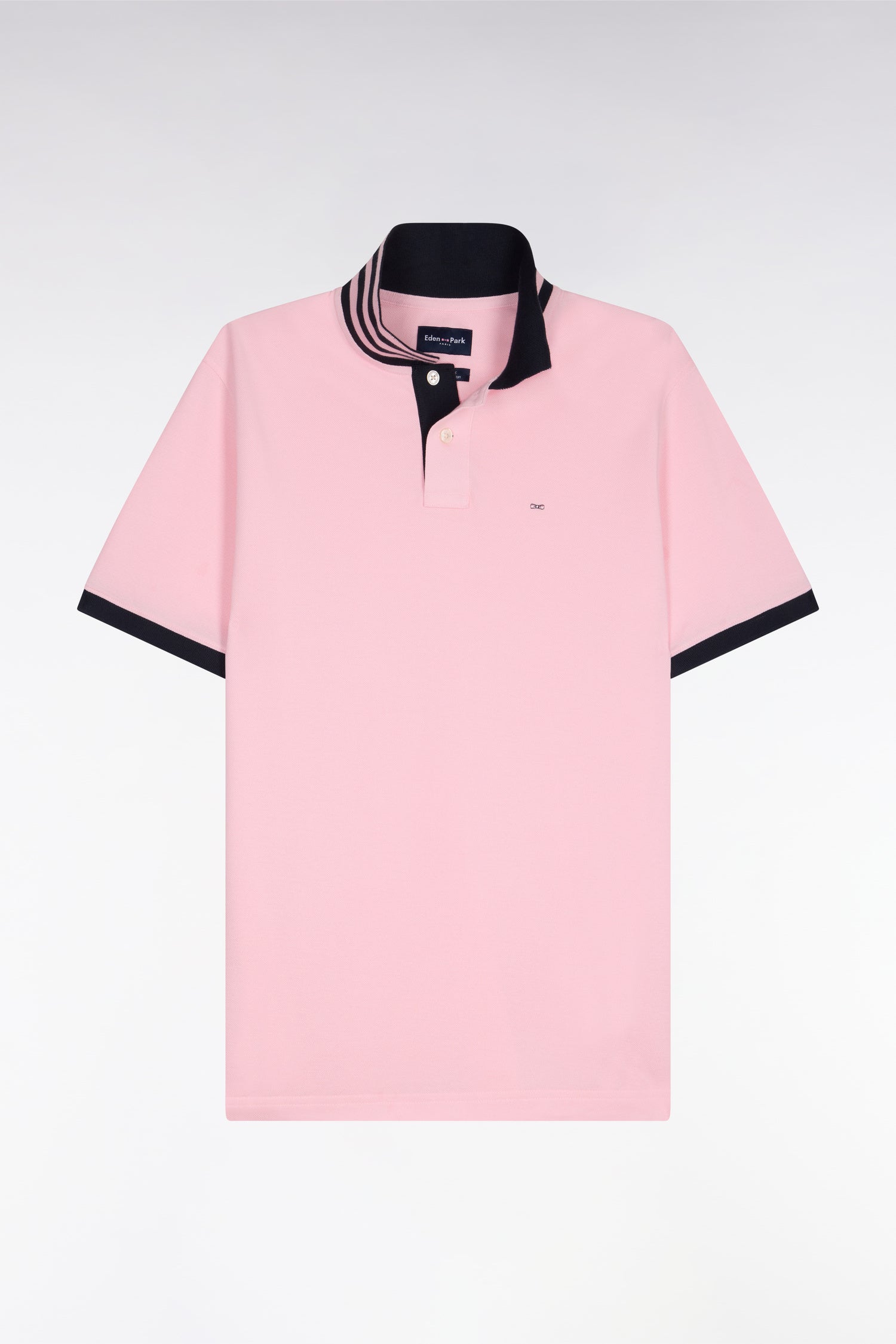 Polo manches courtes en piqué coton rose clair dessous de col rayé coupe slim
