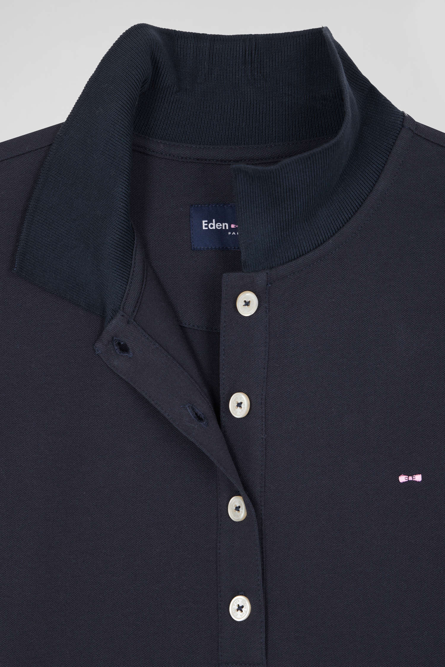Slim navy blue plain stretch cotton short-sleeved polo shirt