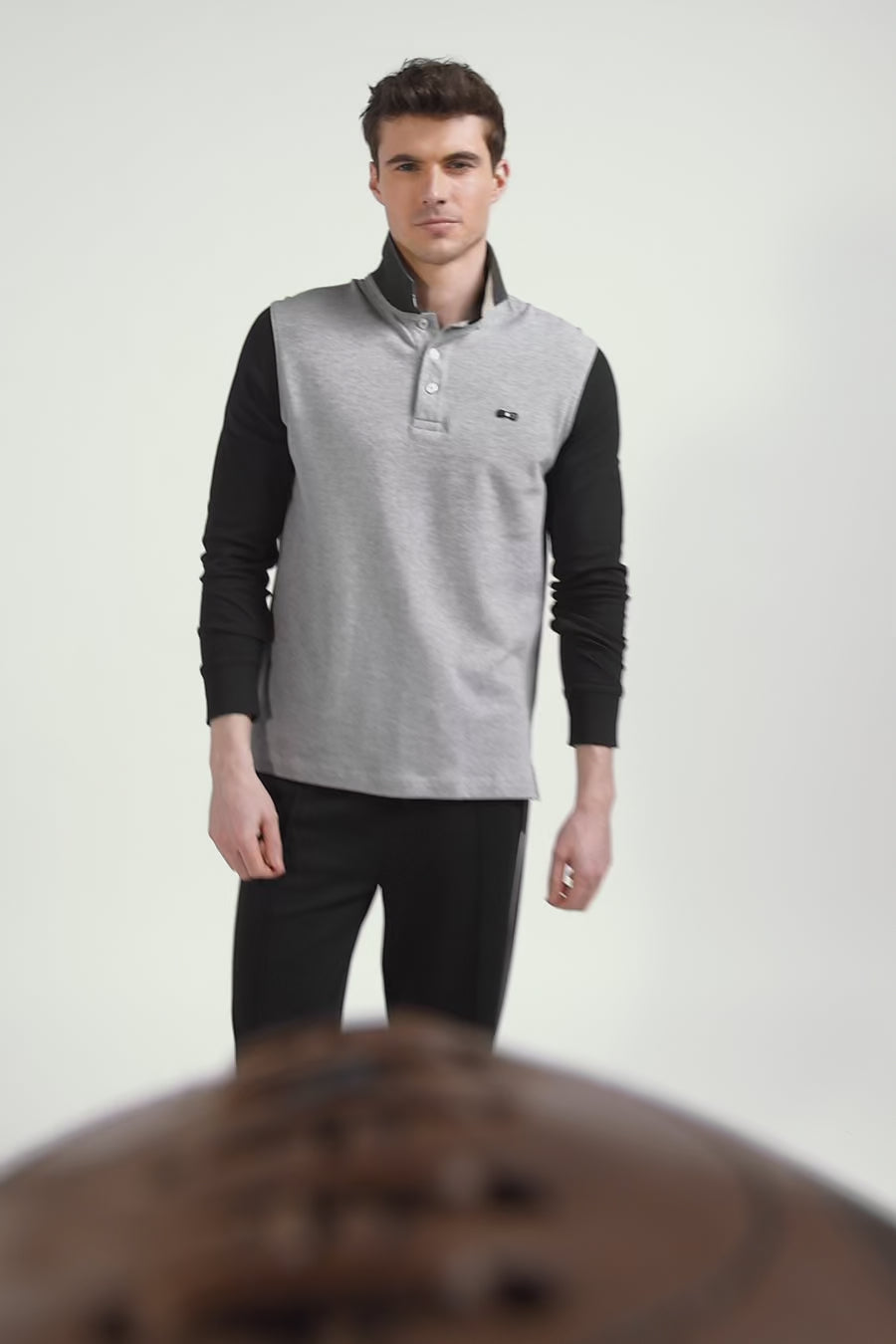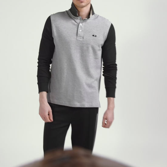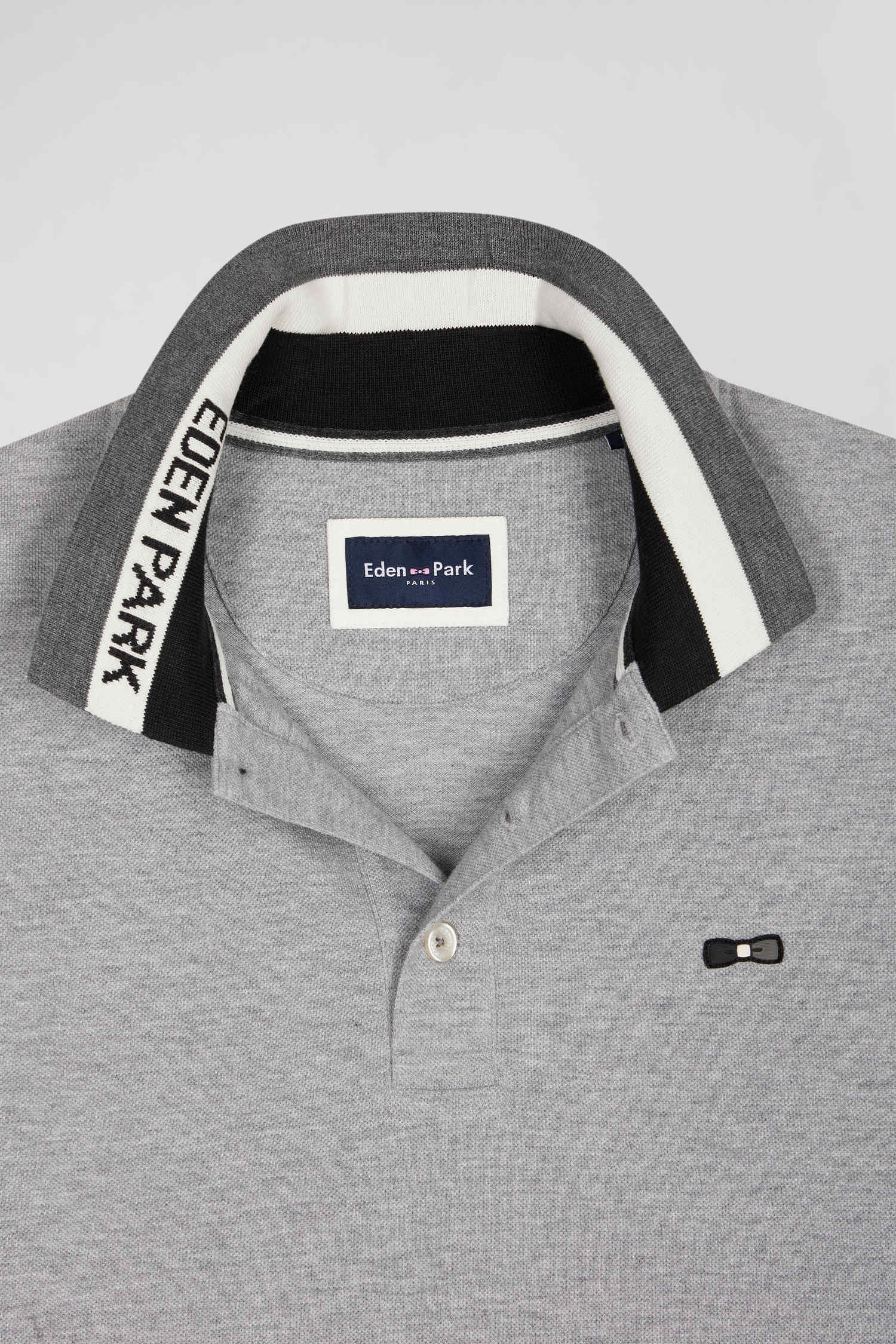 Opt for elegant, contemporary style with this men's long-sleeved polo shirt. The subtle combination of neutral colors creates a modern colorblock effect. With its three-tone ribbed collar embossed with Eden Park jacquard and signature oval buttons, this polo shirt in soft cotton piqué proudly bears the sporting inspirations of our House.