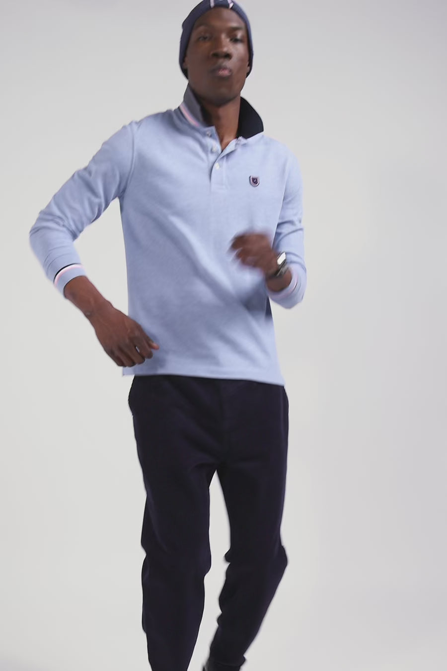 Crafted in soft cotton pique, this long-sleeved polo features a tricolored collar for a preppy touch. At the back, jacquard knitting signs the polo shirt with our company name for a sporty, polished style. Reworked in the form of a gum patch, our iconic bow tie is added to this timeless piece.