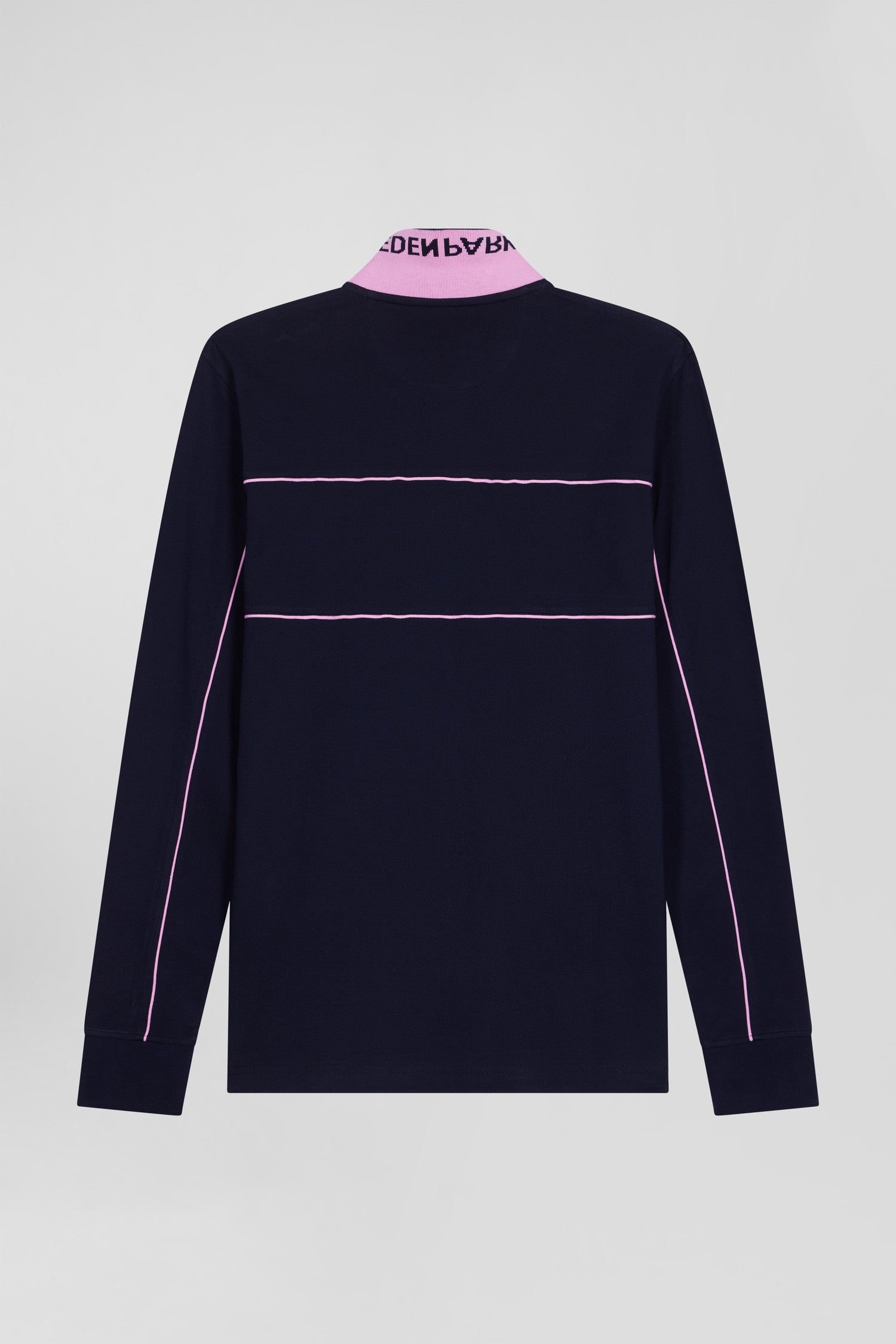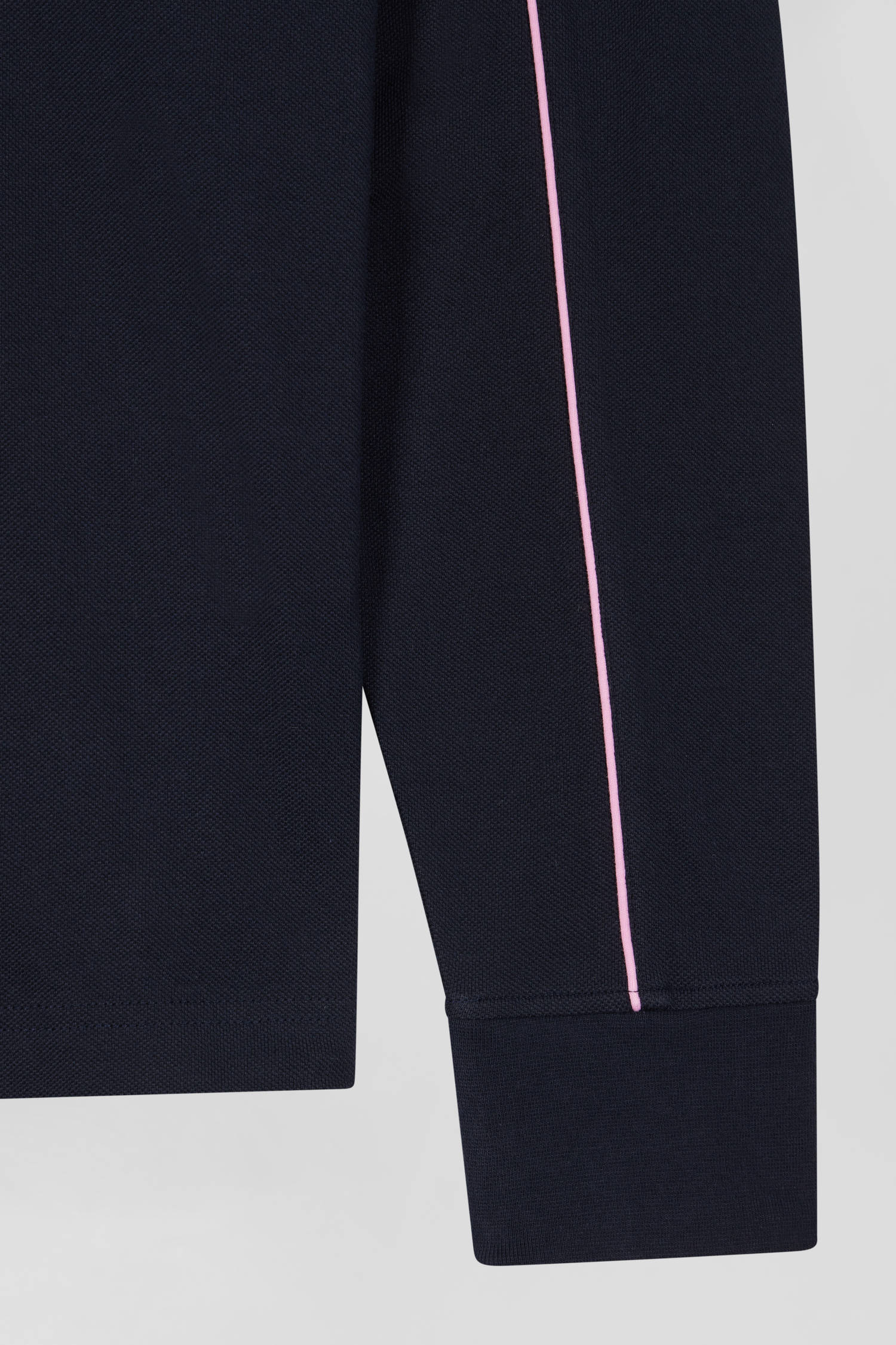 Regular navy blue long-sleeved cotton piqué polo shirt with pink piping