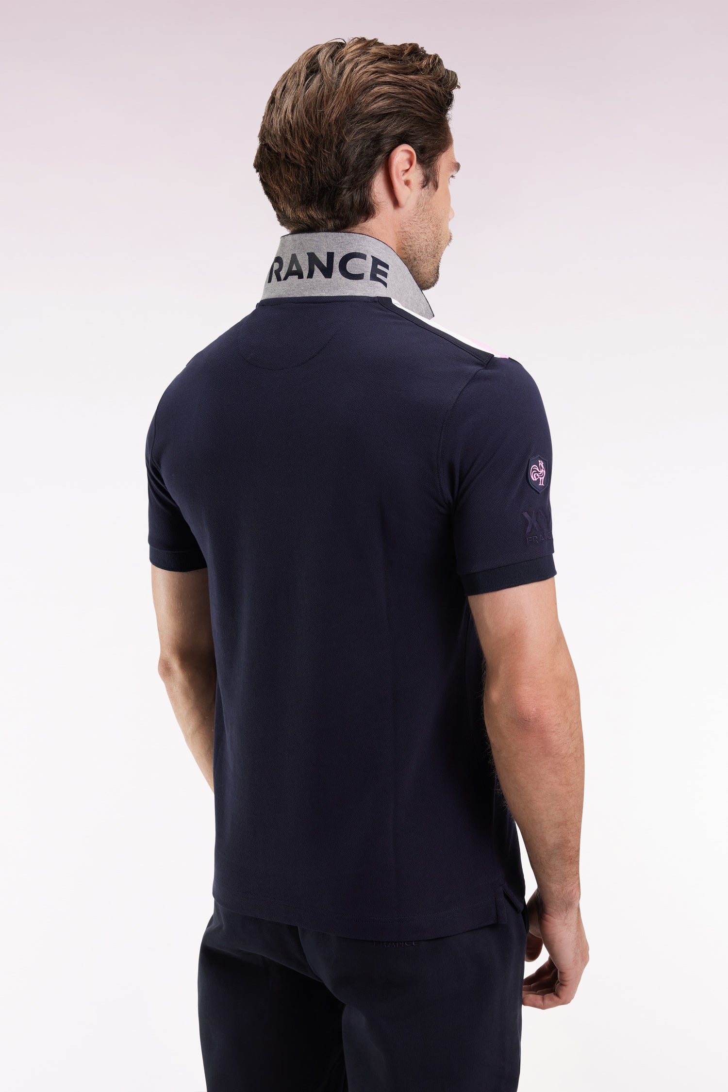 XV de France short-sleeved polo shirt in straight-cut navy cotton