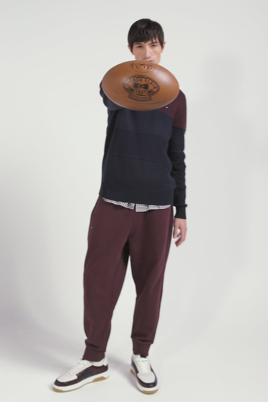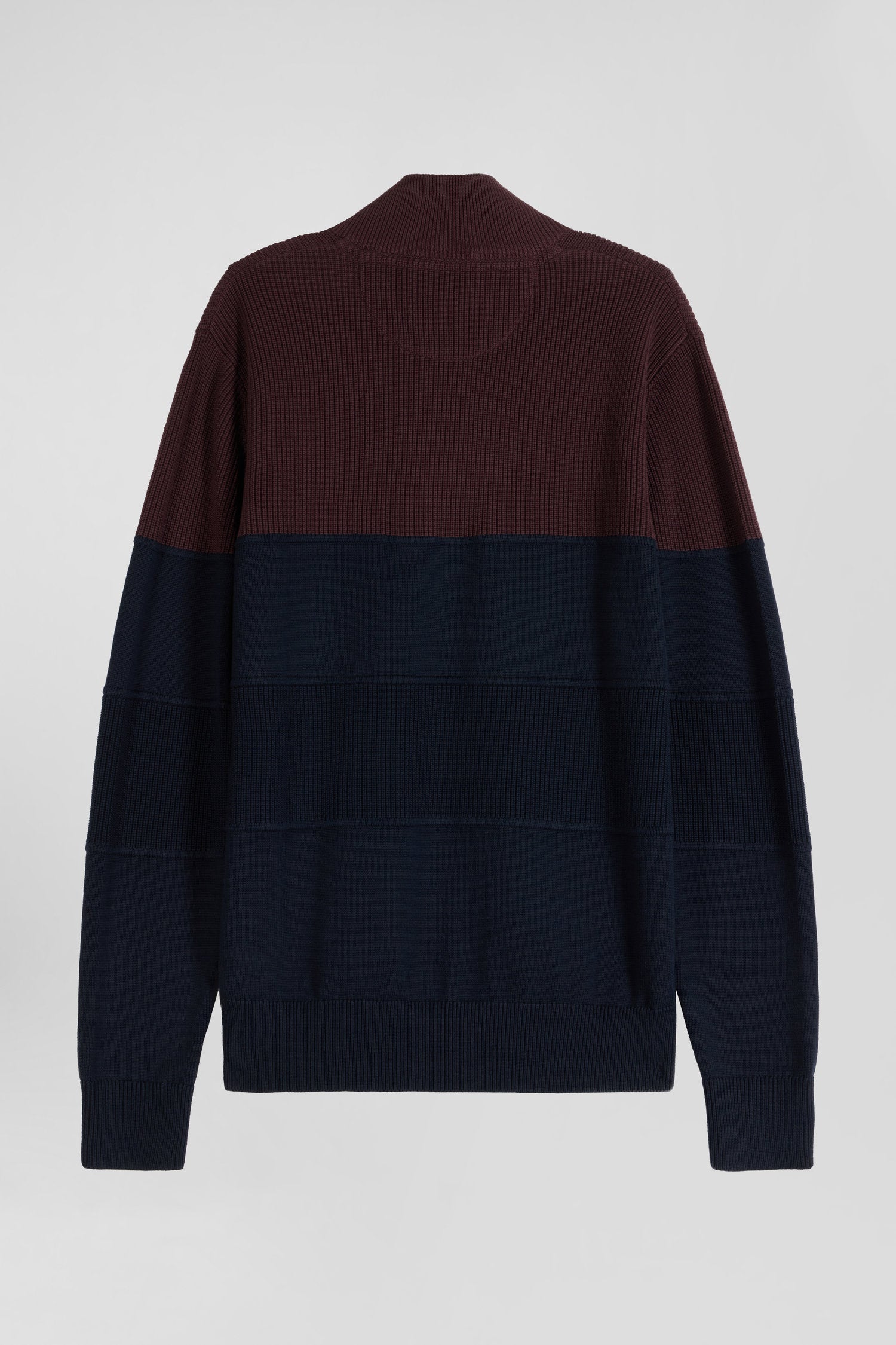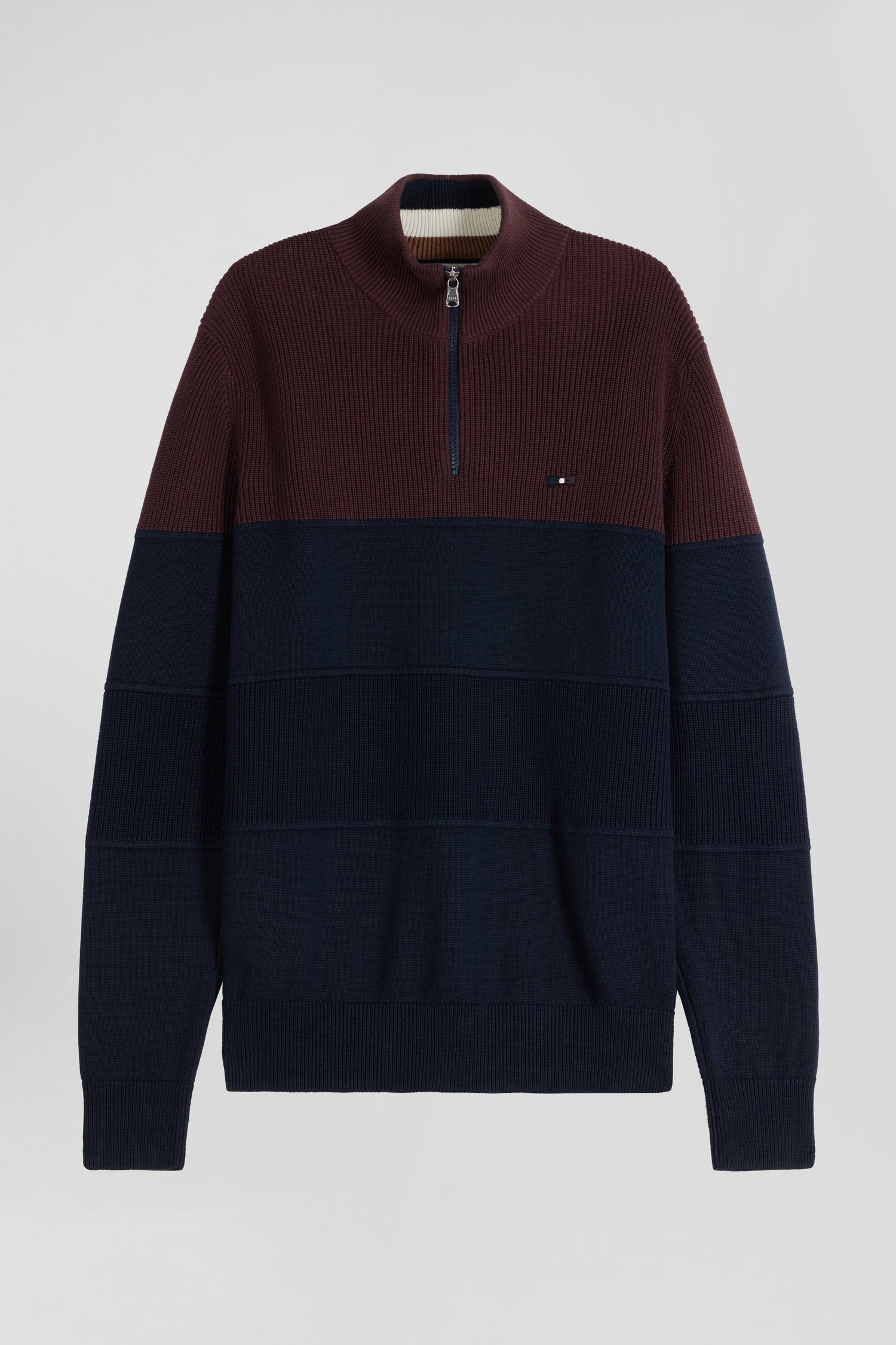 Regular burgundy cotton semi-zipped jumper with knit patterns