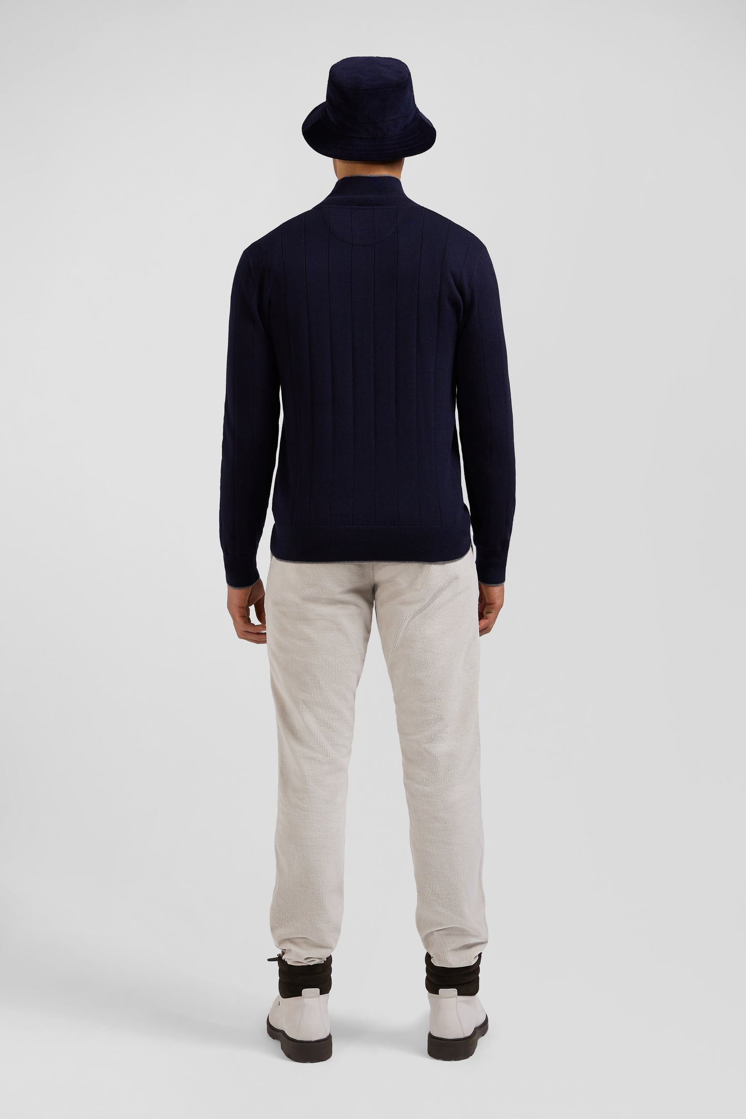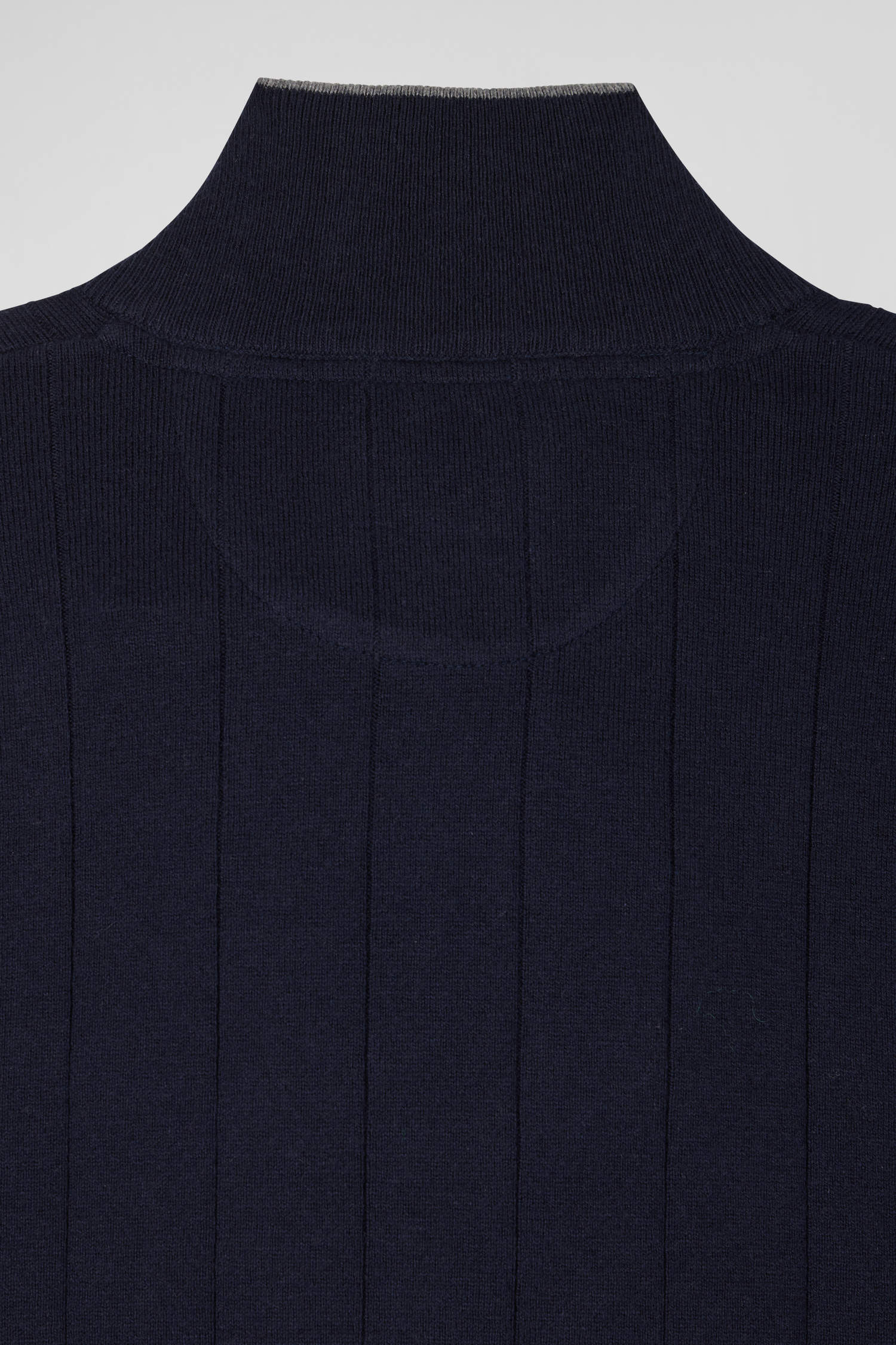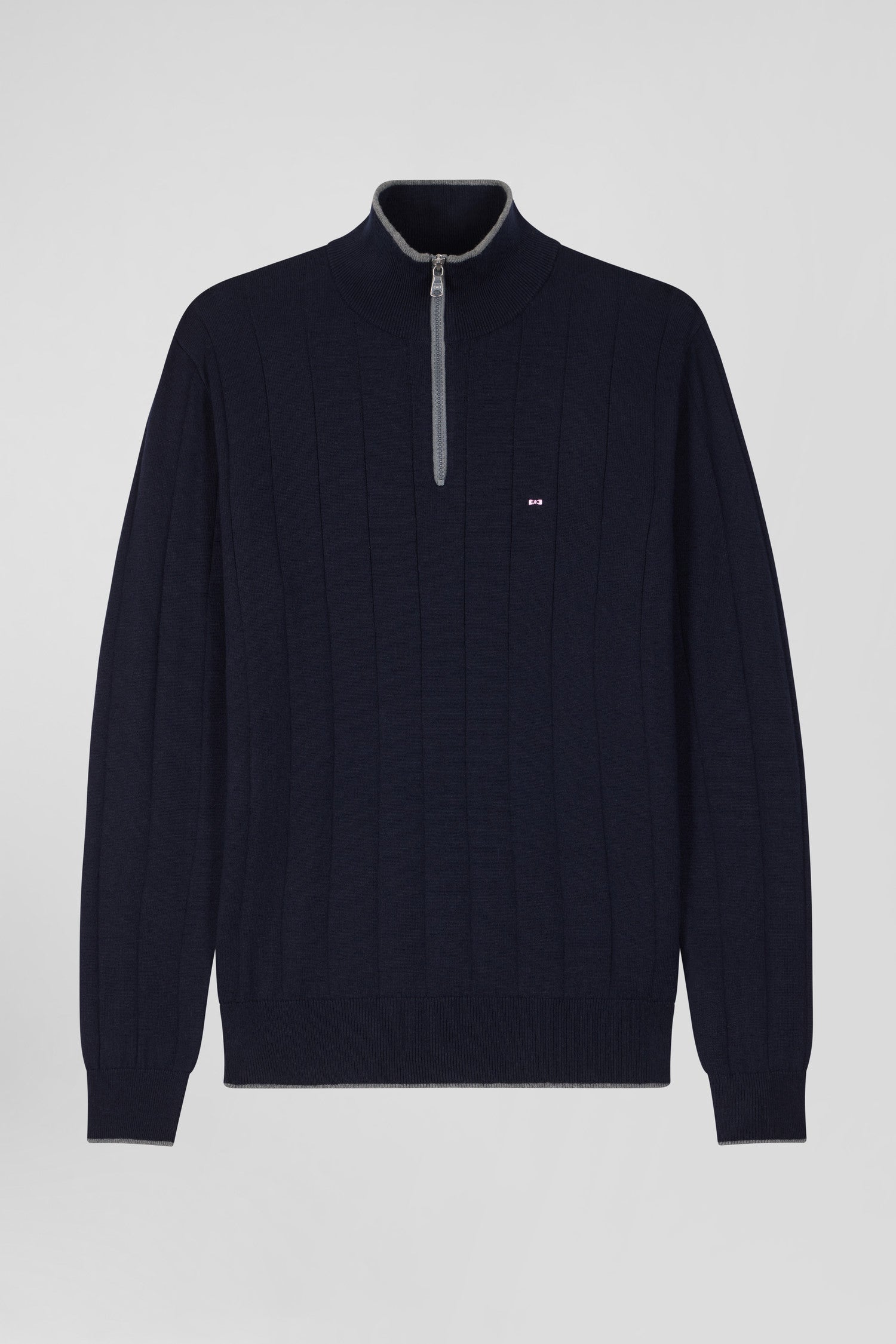 Regular navy blue semi-zipped cotton and cashmere jumper