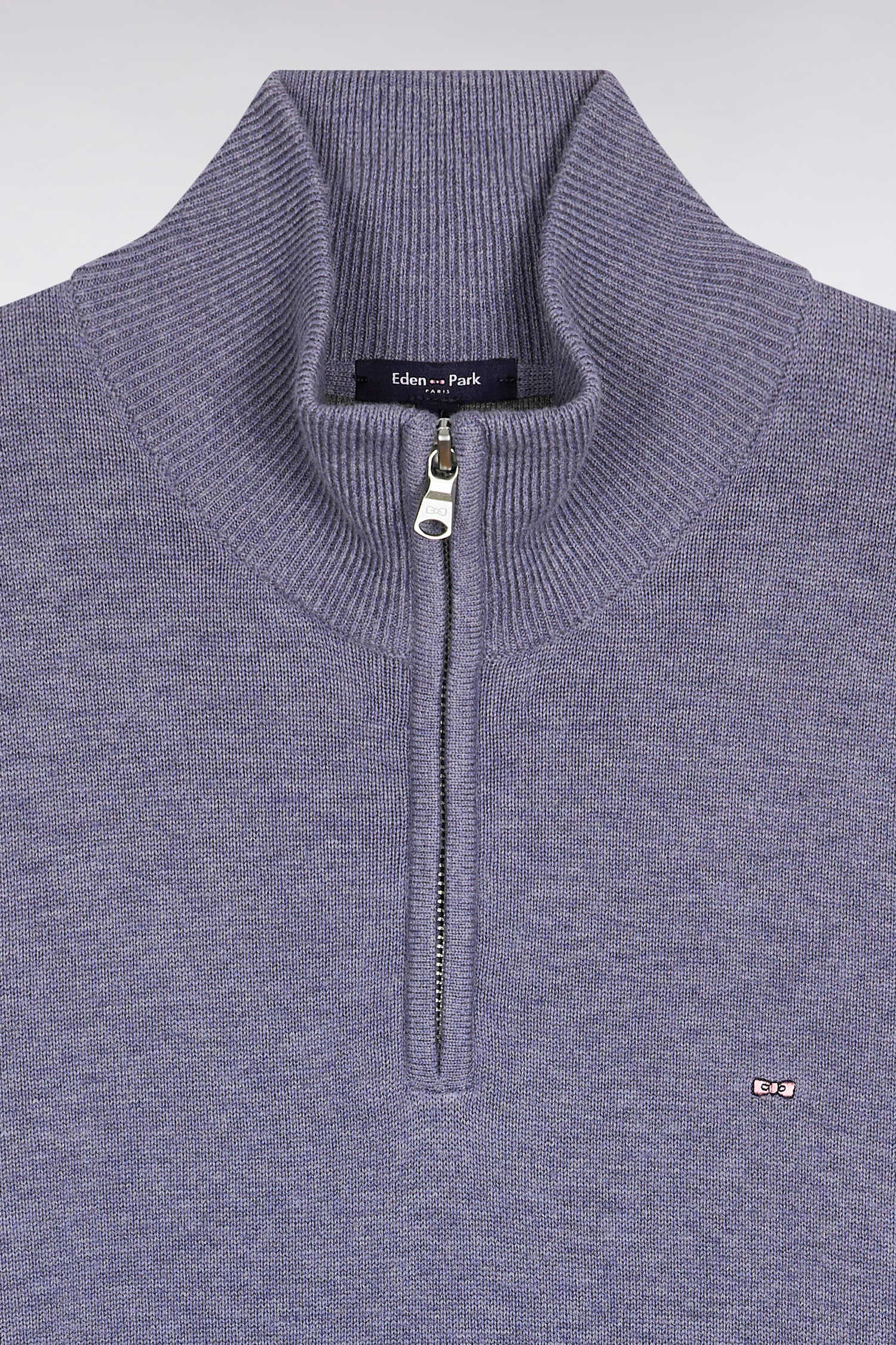 A men's wardrobe classic, the zipped trucker-neck sweater in wool and cotton blend embodies the functional elegance of the Eden Park wardrobe. Its comfortable straight cut lends itself to all kinds of layering. The bowtie embroidery on the chest and the signature slider zip give this timeless sweater the discreet signature of our French house. All you have to do is choose from 14 colors!