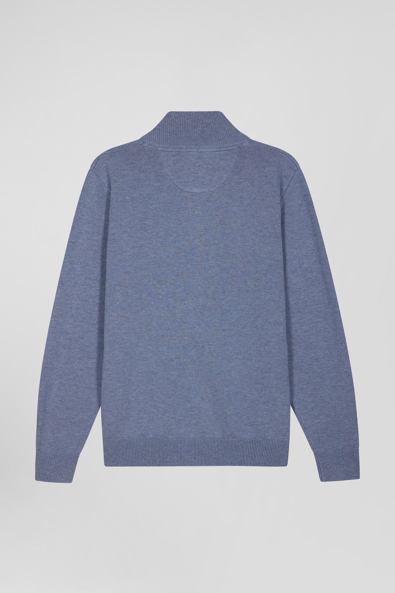 Regular light blue semi-zipped wool and cotton jumper