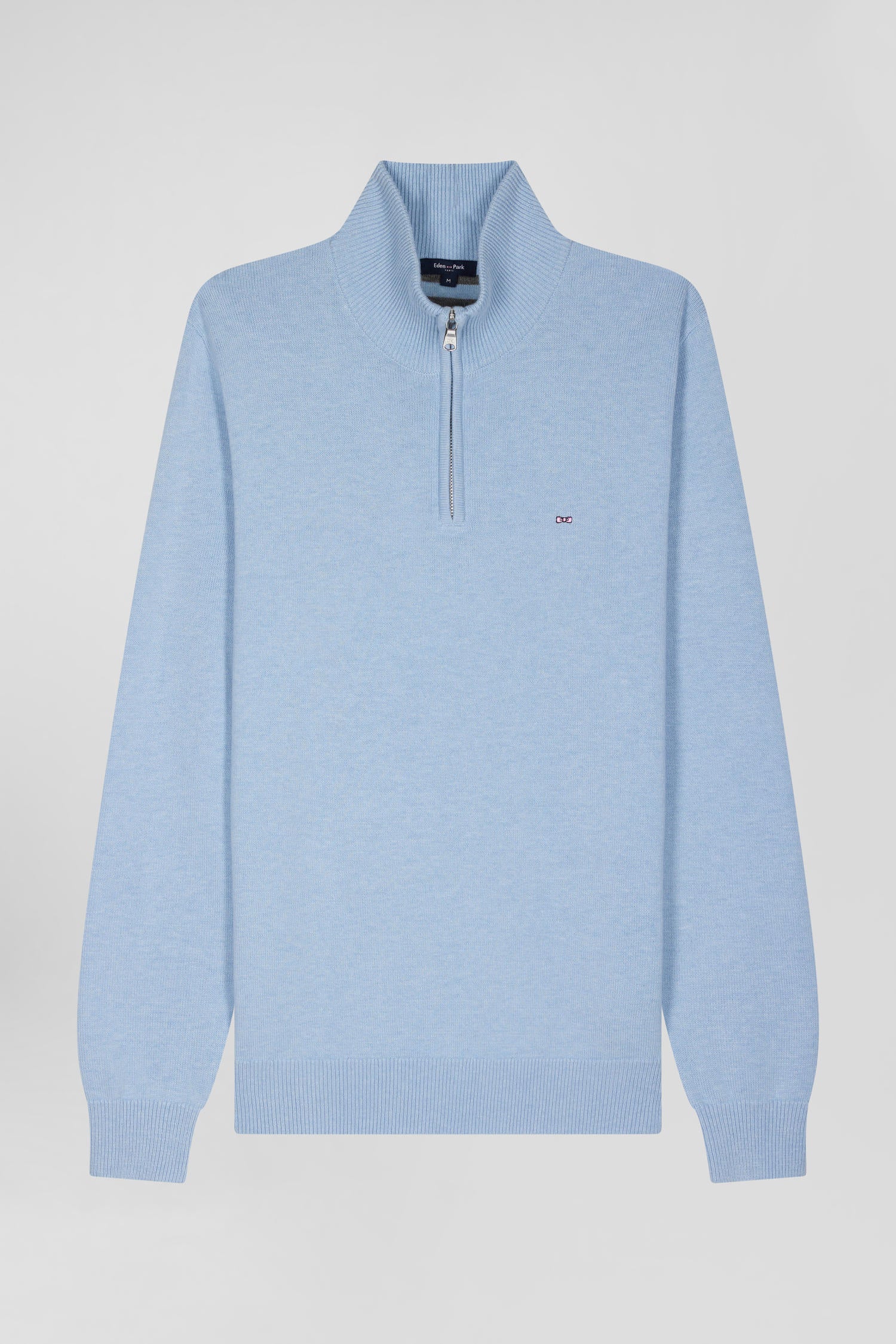 Regular sky blue semi-zipped wool and cotton jumper