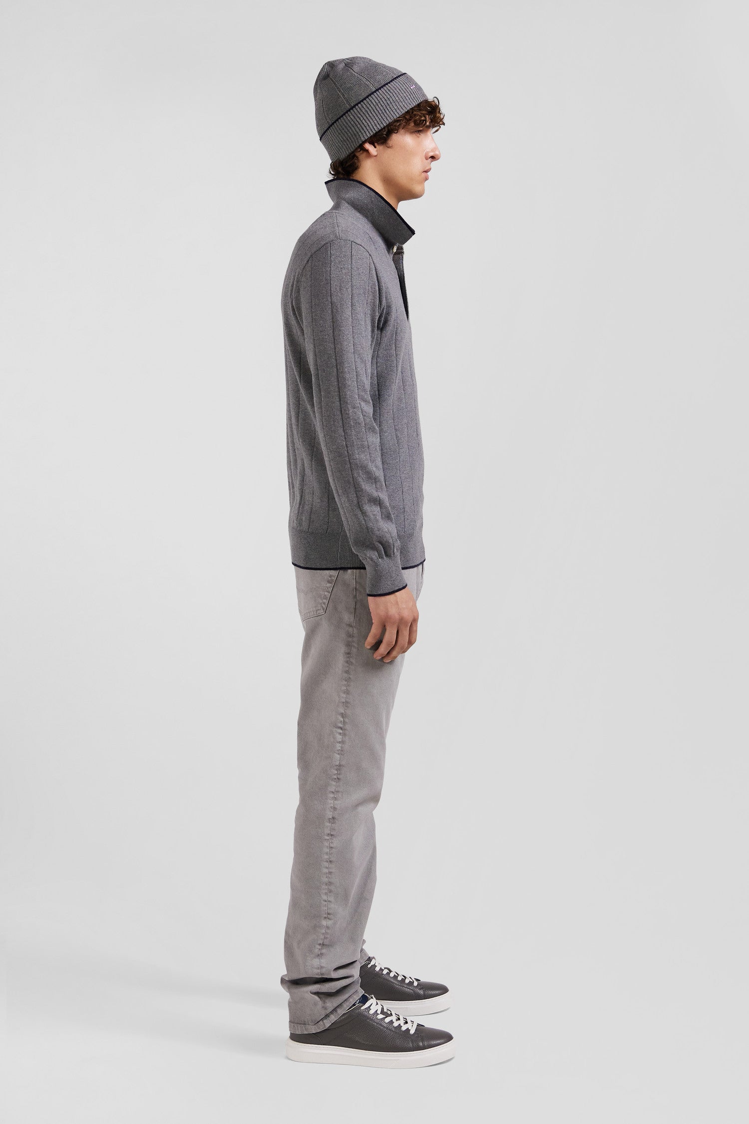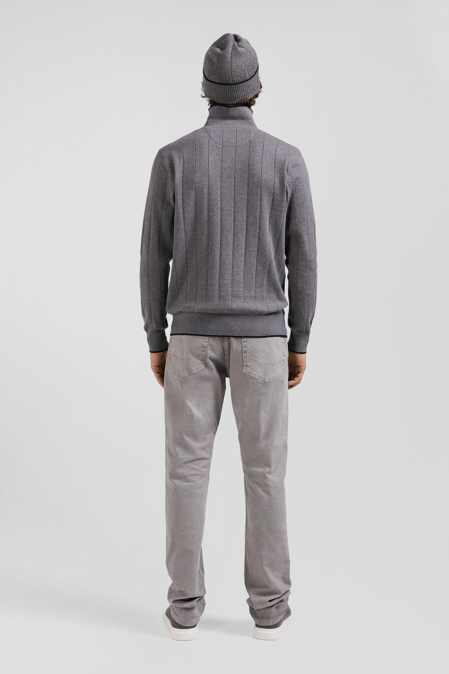 Regular grey cotton and cashmere jumper with rugby shirt collar