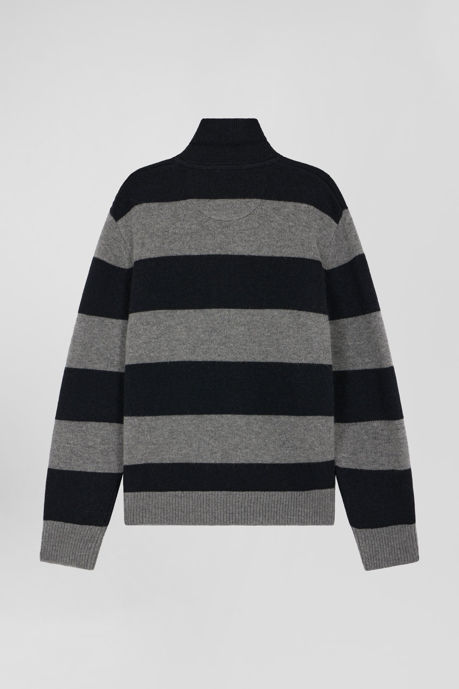 Black and grey striped wool and cashmere polo-neck sweater