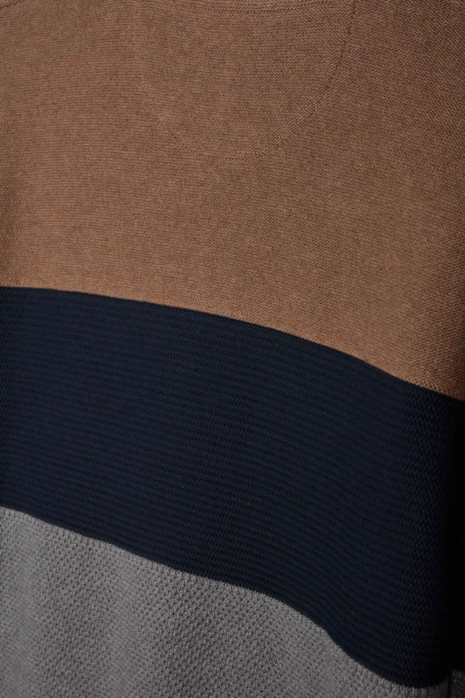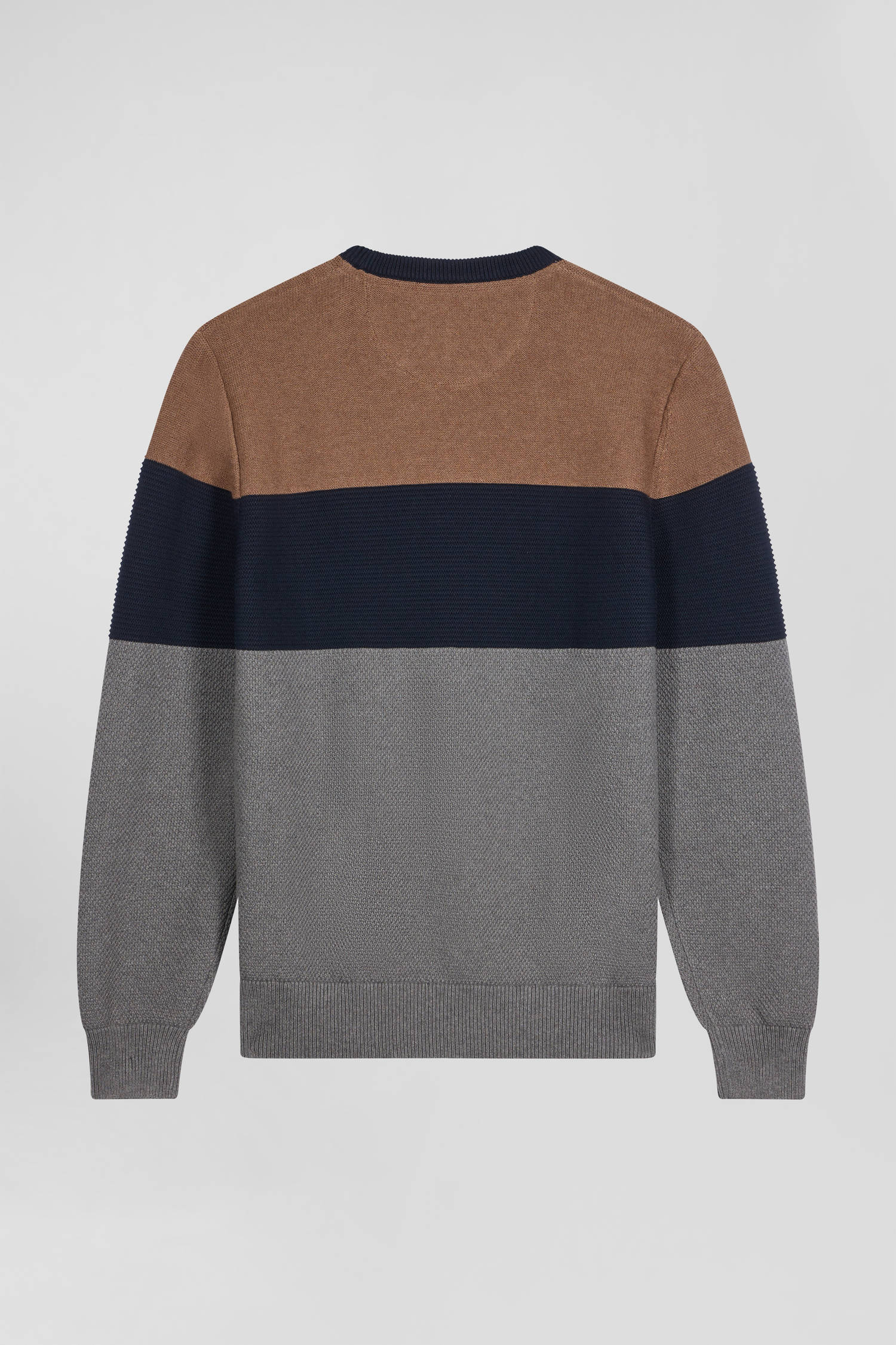 Round-neck sweater in grey and hazelnut cotton with regular-cut knits
