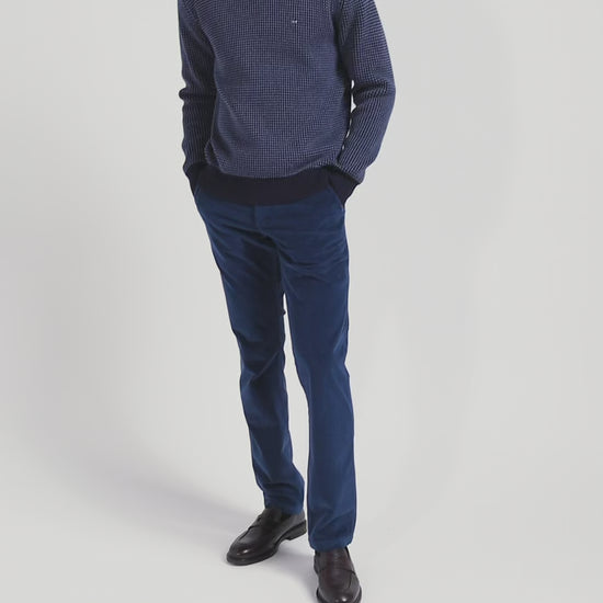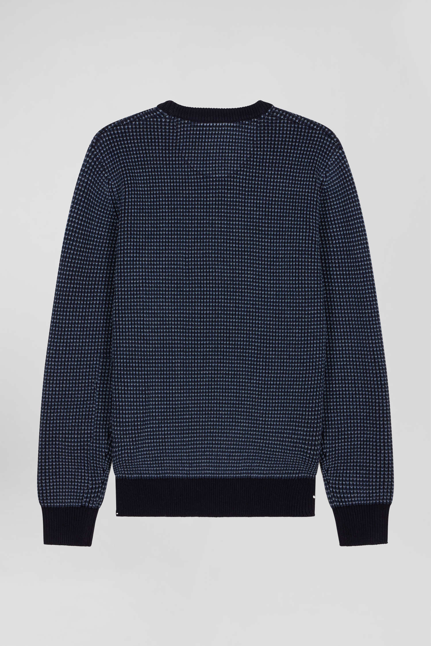 Regular navy wool and cotton crew neck jumper