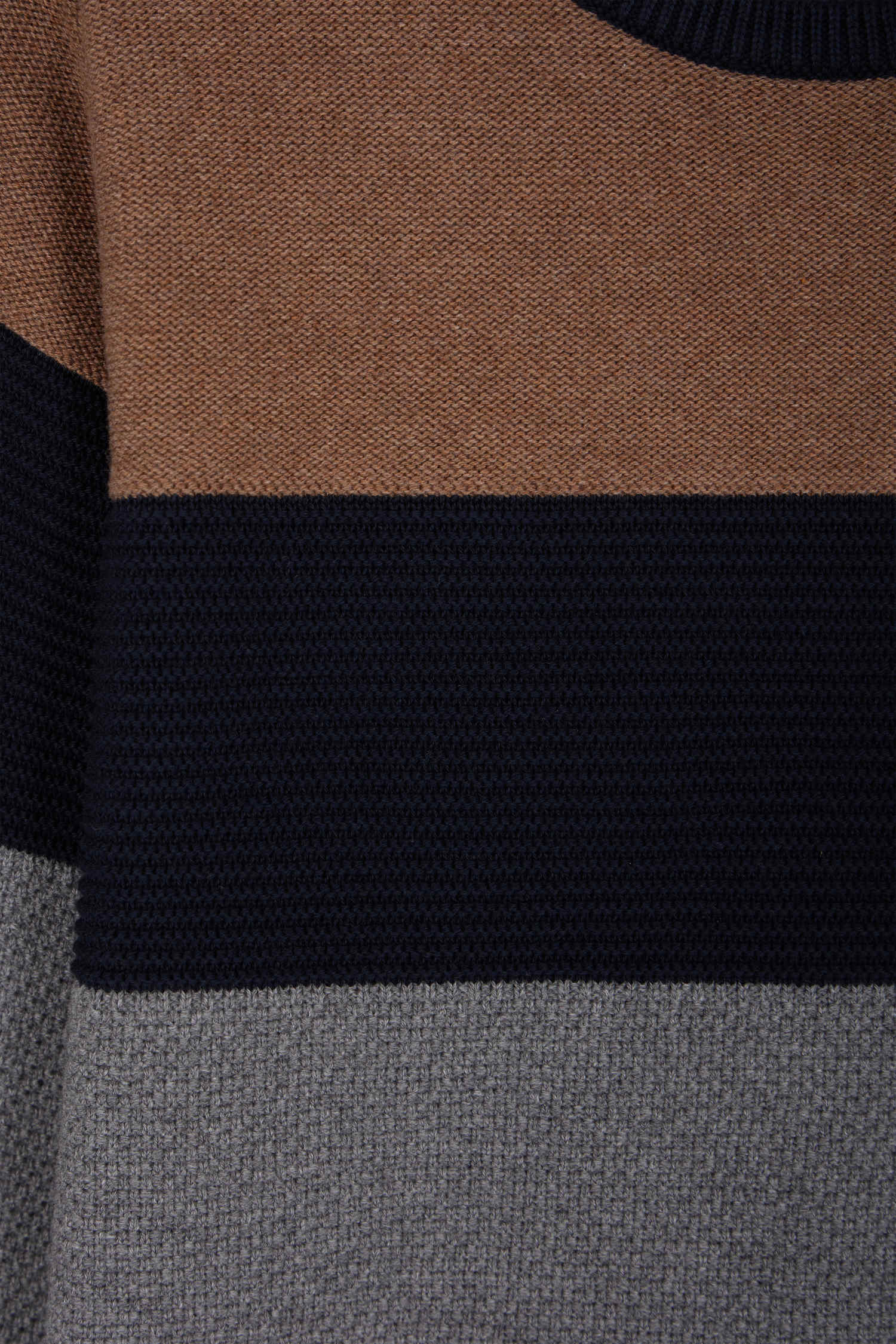 Three-tone round-neck sweater in hazelnut cotton, regular fit