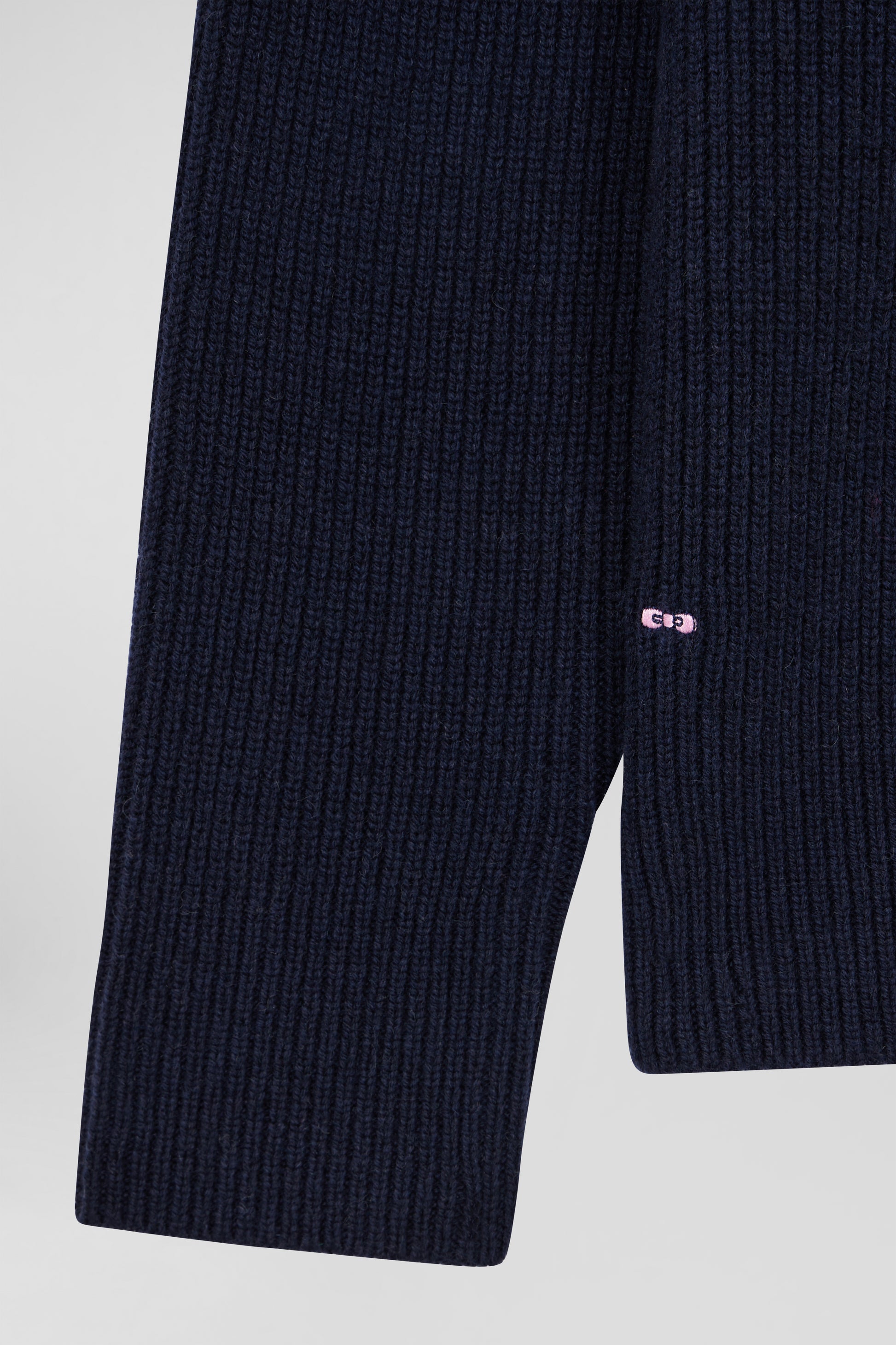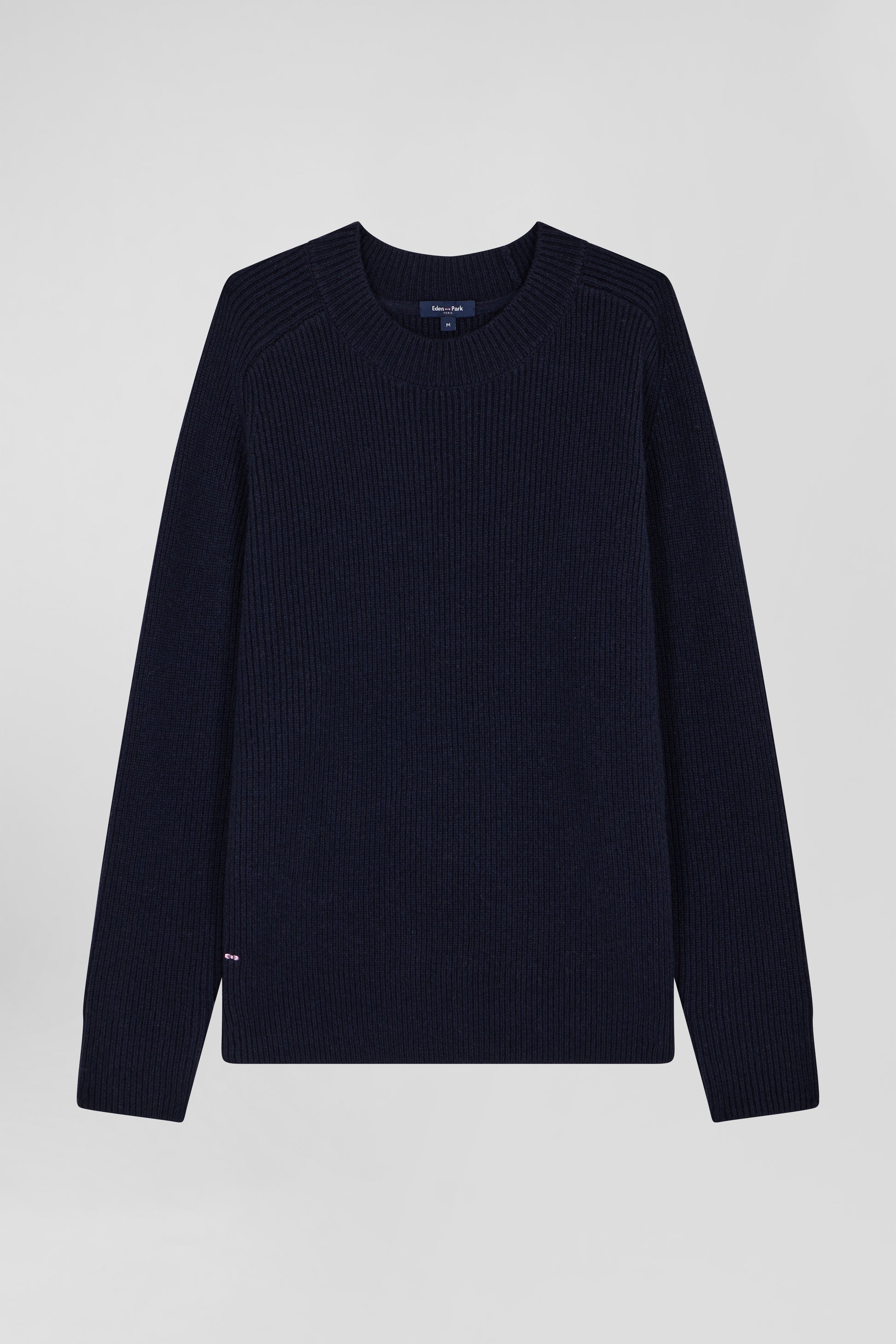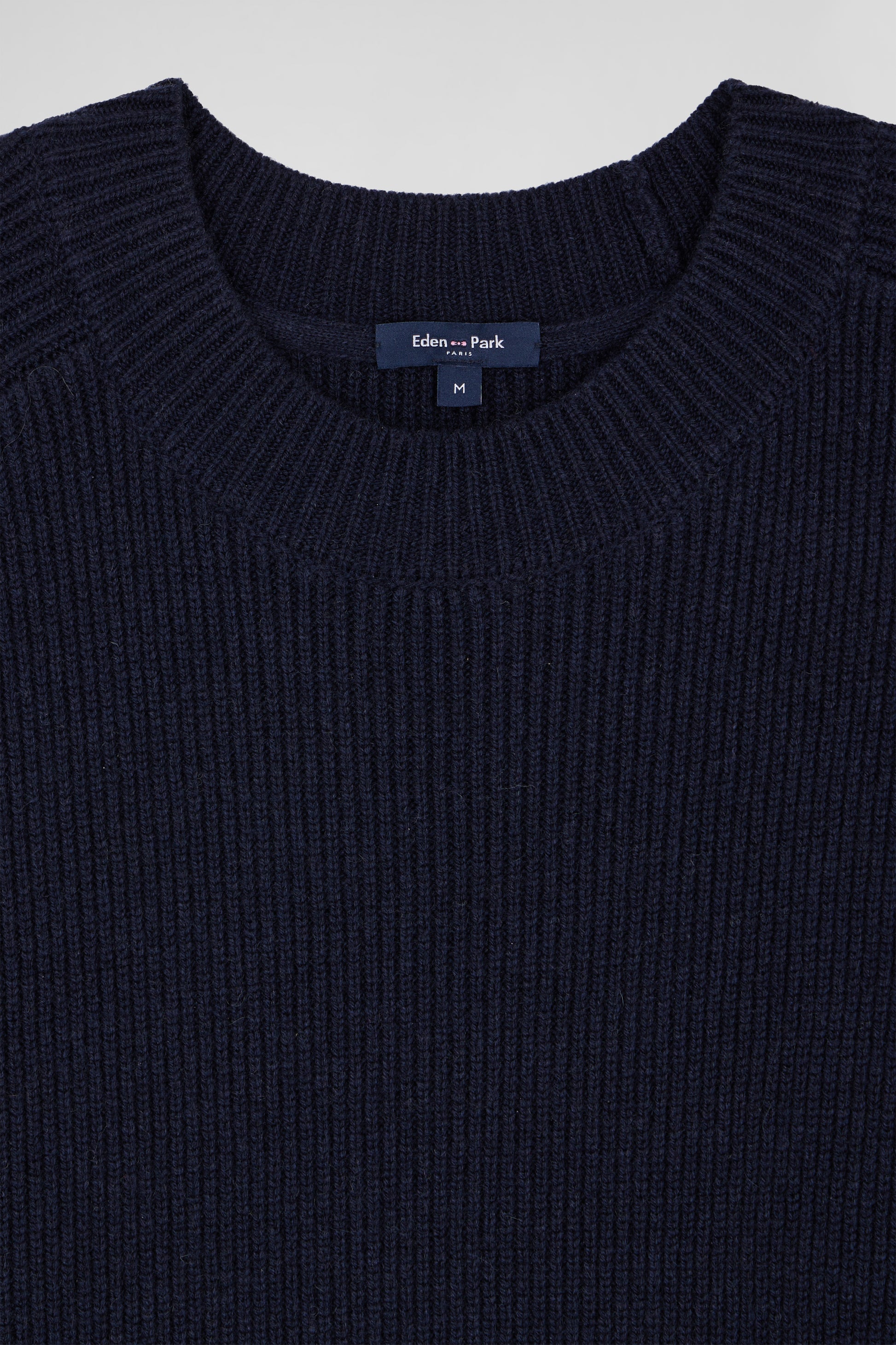 Navy blue wool and cashmere round-neck sweater, regular fit
