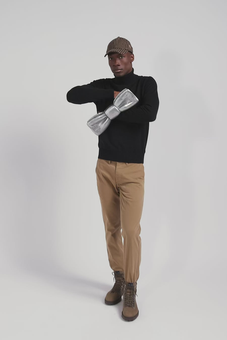 Warmth and style meet in this turtleneck sweater, a timeless essential for any wardrobe. Designed in a noble blend of wool and cotton, it offers softness and comfort all day long. The subtle contrast of its striped inner half-moon adds a discreet, elegant signature to this turtleneck offered in a wide range of colors.