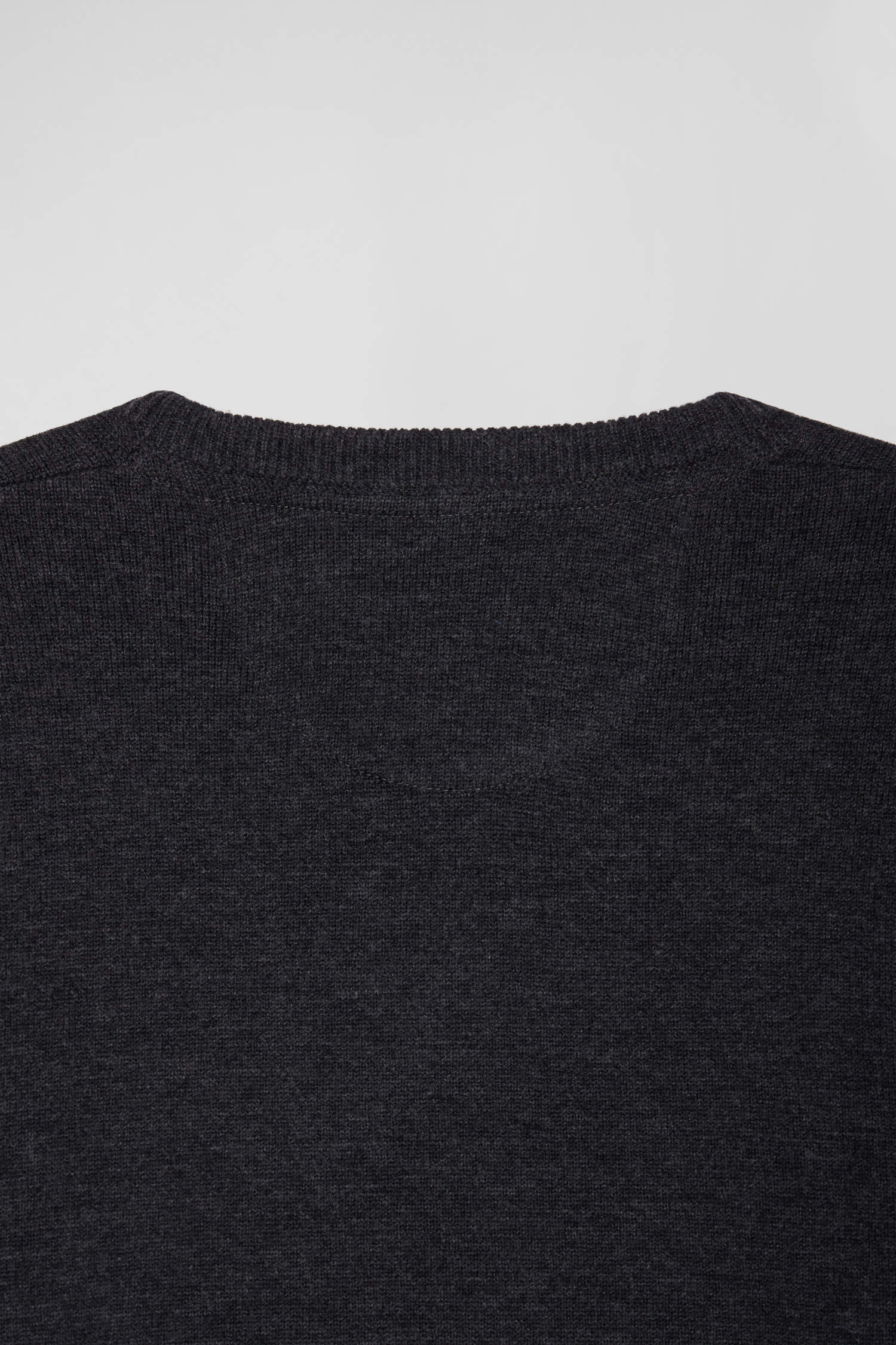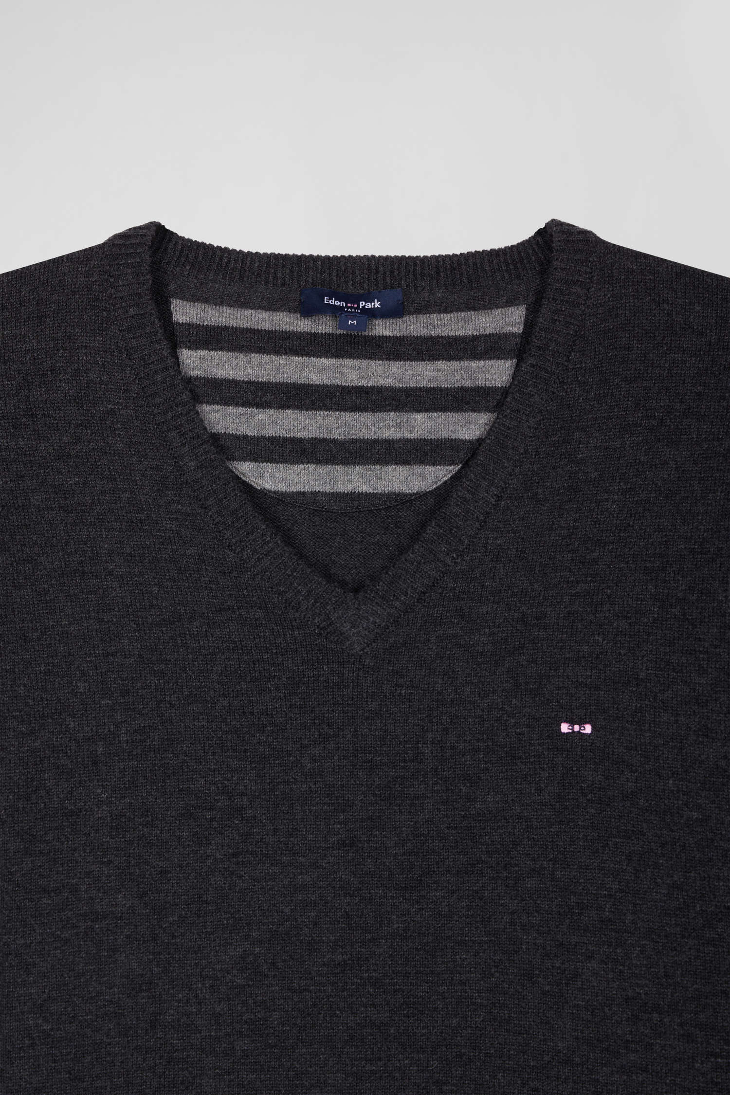 Regular anthracite grey wool and cotton V-neck jumper with striped details