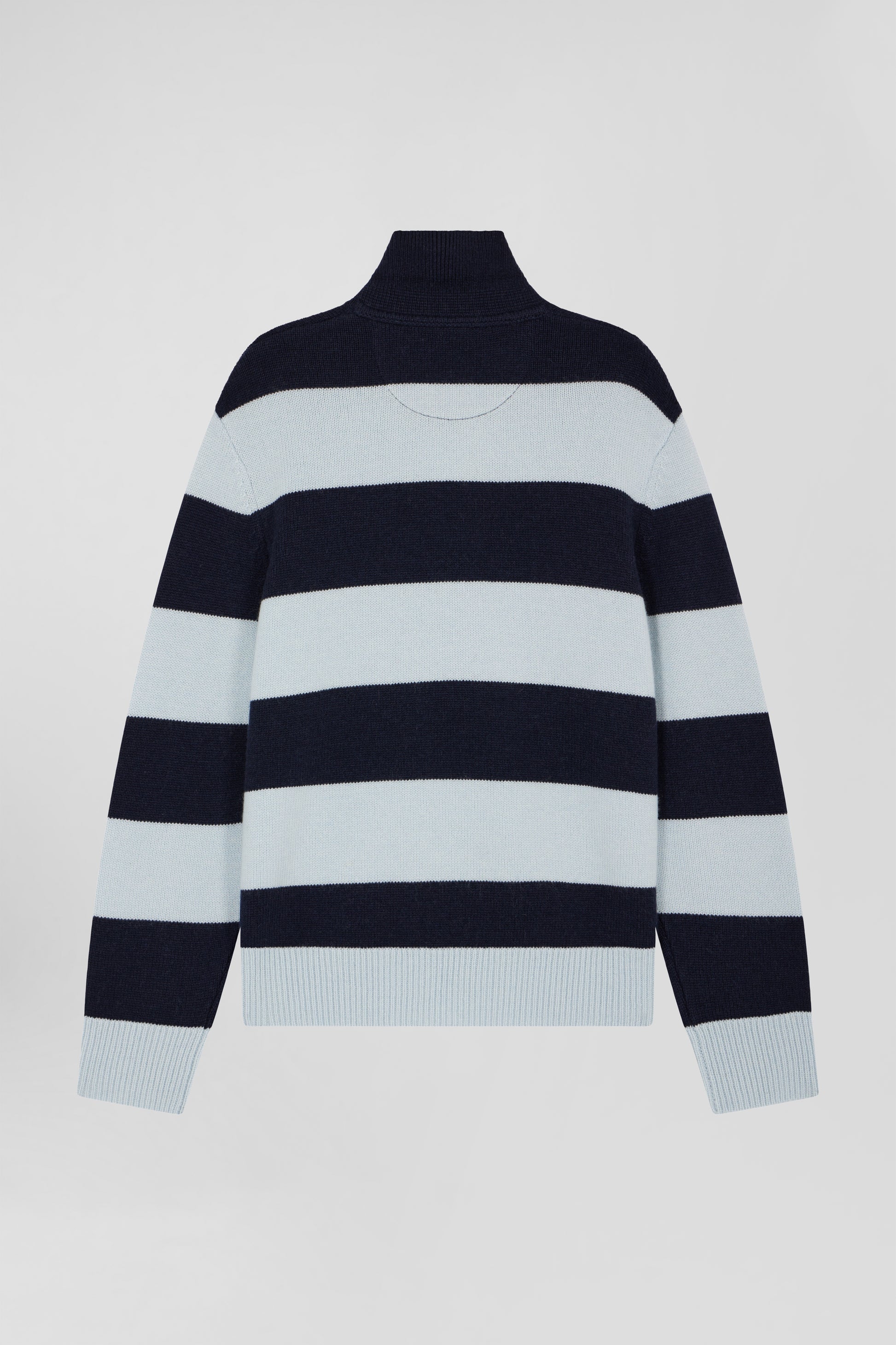 Light blue and navy striped wool and cashmere polo-neck sweater