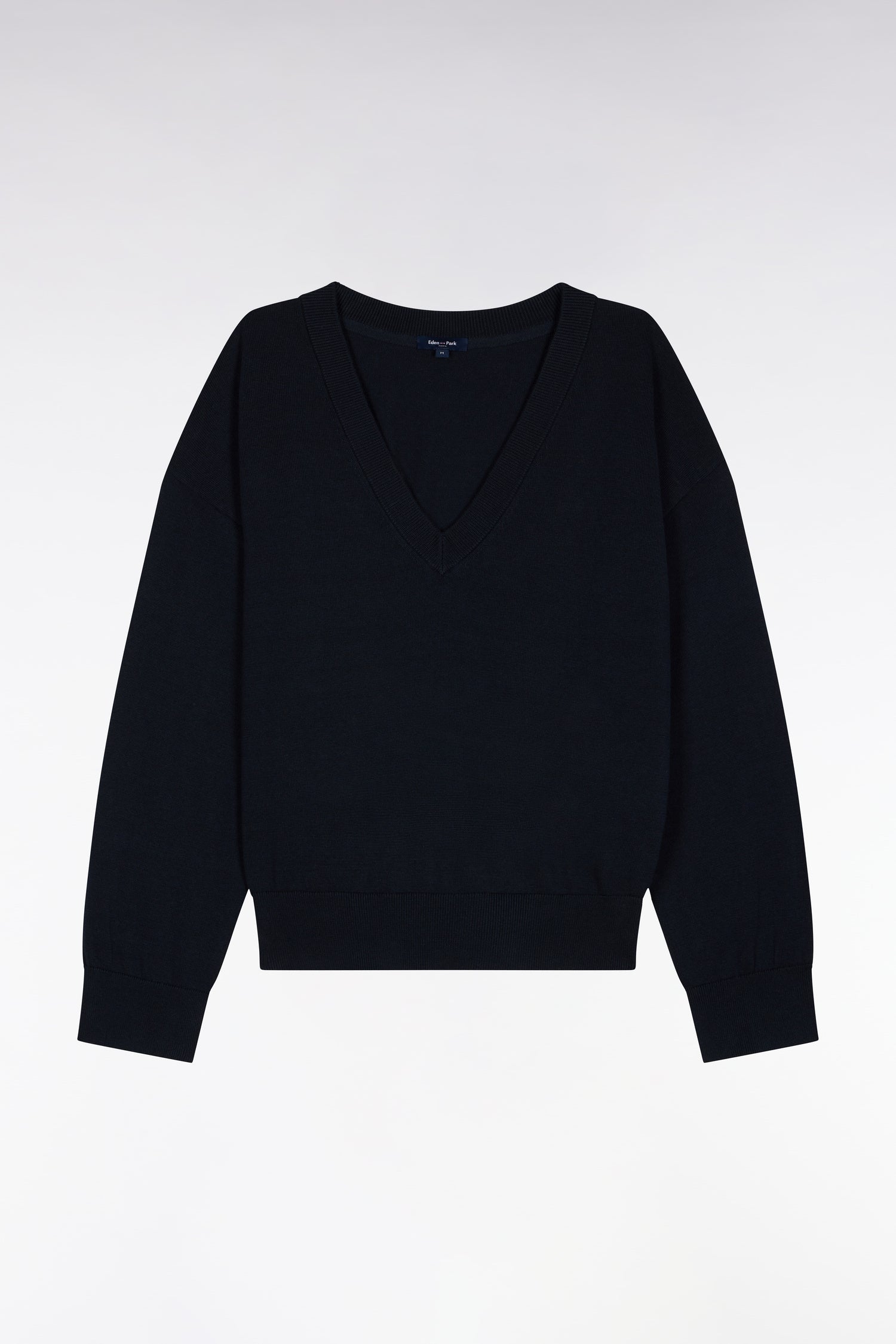 Ces pulls oversized en coton pur aux manches resserrées jouent sur les volumes pour offrir une silhouette moderne et confortable. Le col V profond et accentué, comme les bordures de manches et le bas de ce pull femme, est bordé de marine, contrastés ou ton sur ton selon le coloris choisi, permettant de varier les styles selon l’envie. À porter sur un jean slim en denim brut, un pantalon à jambes larges ou une jupe pour une allure contemporaine aux accents preppy chic. Parfaits pour les soirées fraîches, les journées cocooning ou un look urbain tout en féminité. Un intemporel offert en coloris écru, marine ou rouge.