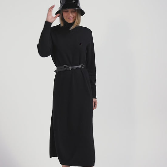 Opt for the timeless elegance of our turtleneck dress, crafted from a soft blend of wool and cotton. This piece features a relaxed fit for added ease and a knit fabric for warmth and style in the winter months. Its discreet pink bowtie embroidery on the chest adds an understated touch of femininity. Perfect for a variety of occasions, this mesh dress adapts to different styles: wear it with tall boots for a sophisticated look, or sneakers for a more casual approach. A versatile and elegant addition to your wardrobe, ideal for enhancing your look this season.
