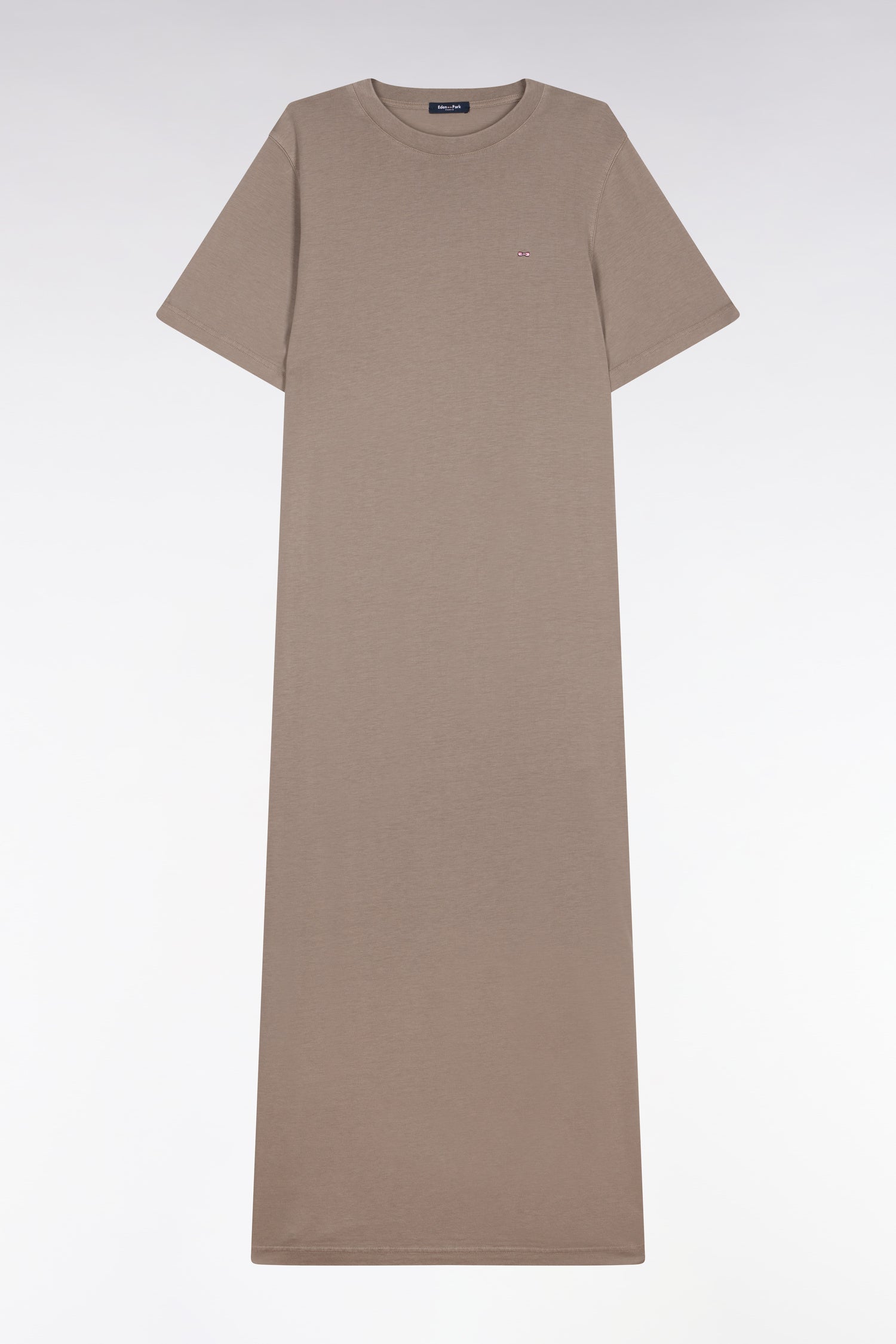 Robe T-shirt en lyocell et coton beige coupe droite