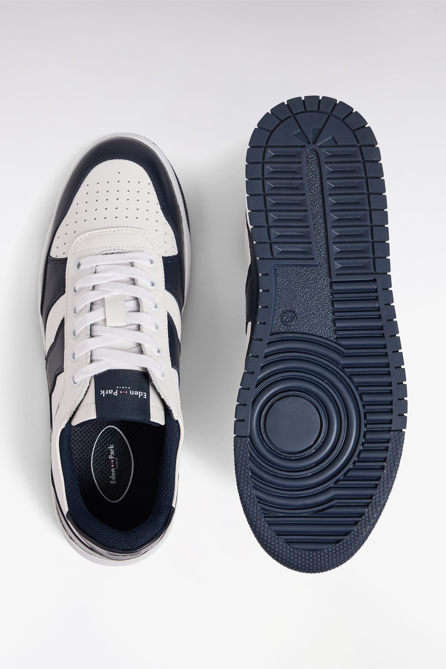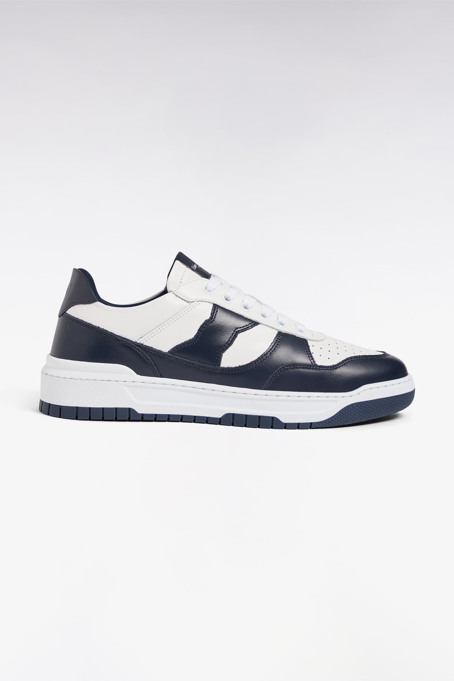 Combining comfort and urban allure, these two-tone navy and white leather sneakers embody the sport-chic style emblematic of our Maison. Perforated details and leather cut-outs, including a yoke featuring our iconic bow tie, add a touch of refinement to this model. With their meticulous construction and sturdy sole, these men's leather sneakers can be worn with jeans or jogging pants.