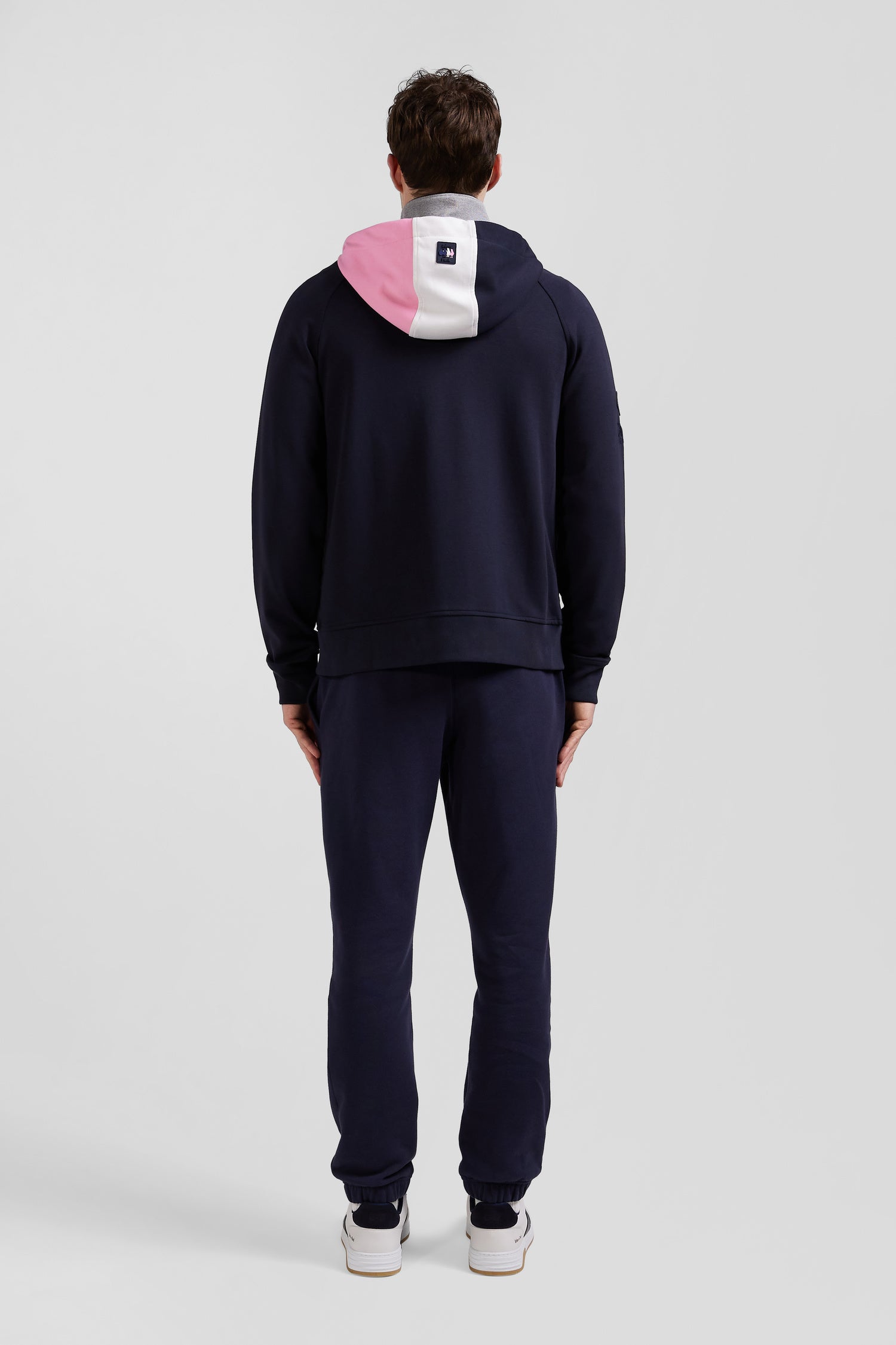 XV de France zipped hooded sweatshirt in cotton blend with navy blue trim, regular fit