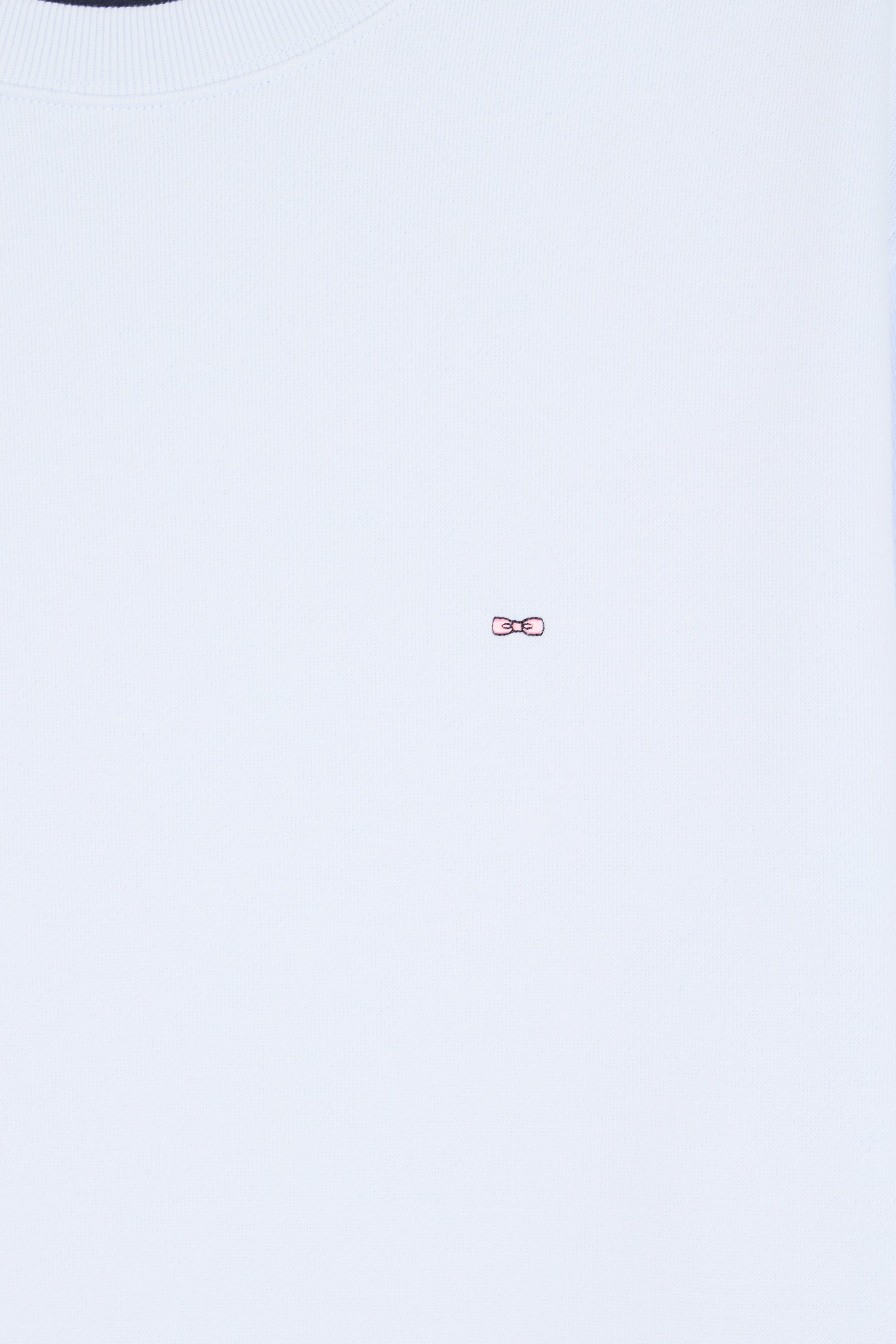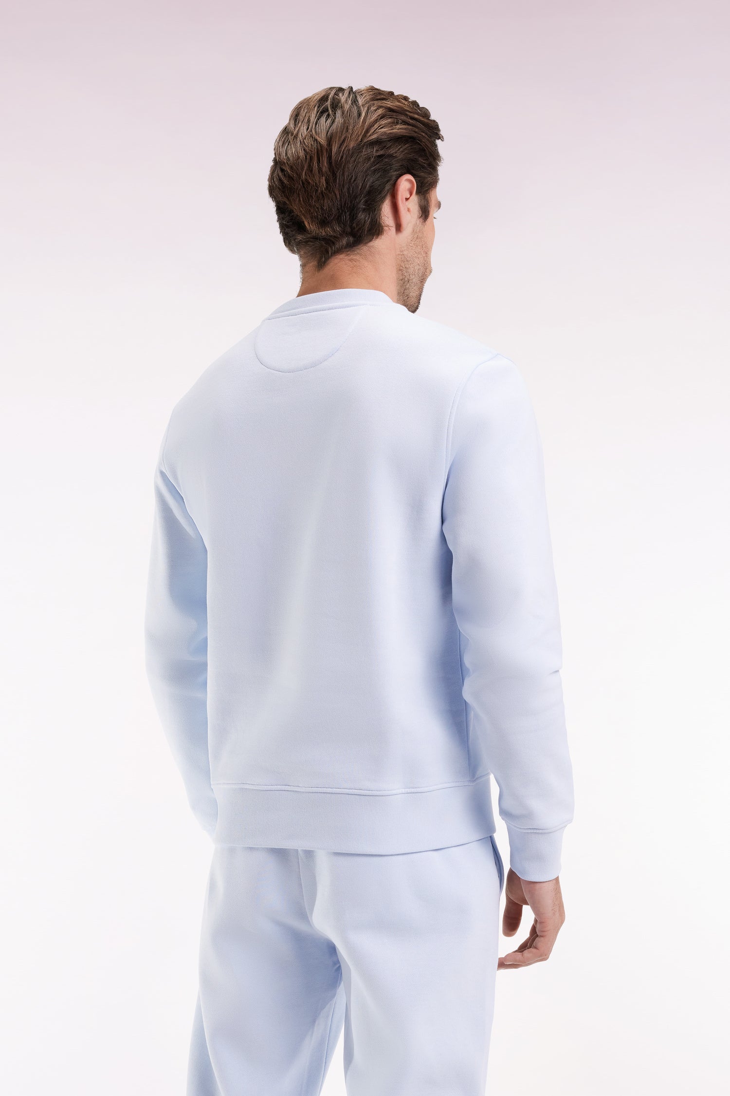 With its straight cut for easy layering and soft, brushed fleece, this men's round-neck sweatshirt is a must-have for the casual wardrobe. Its plain design and refined finishes, such as its emblem embroidery and flat-knit ribbing, assert its simple elegance.
