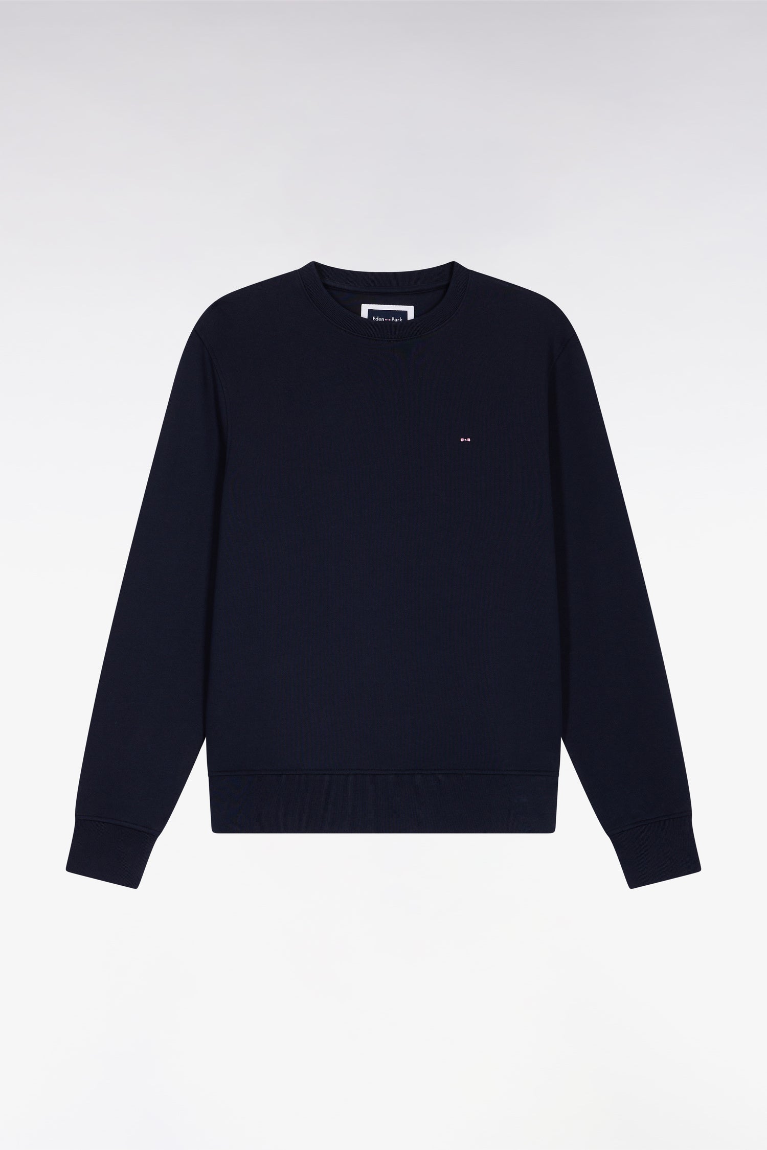 Navy cotton round-neck sweatshirt, straight cut
