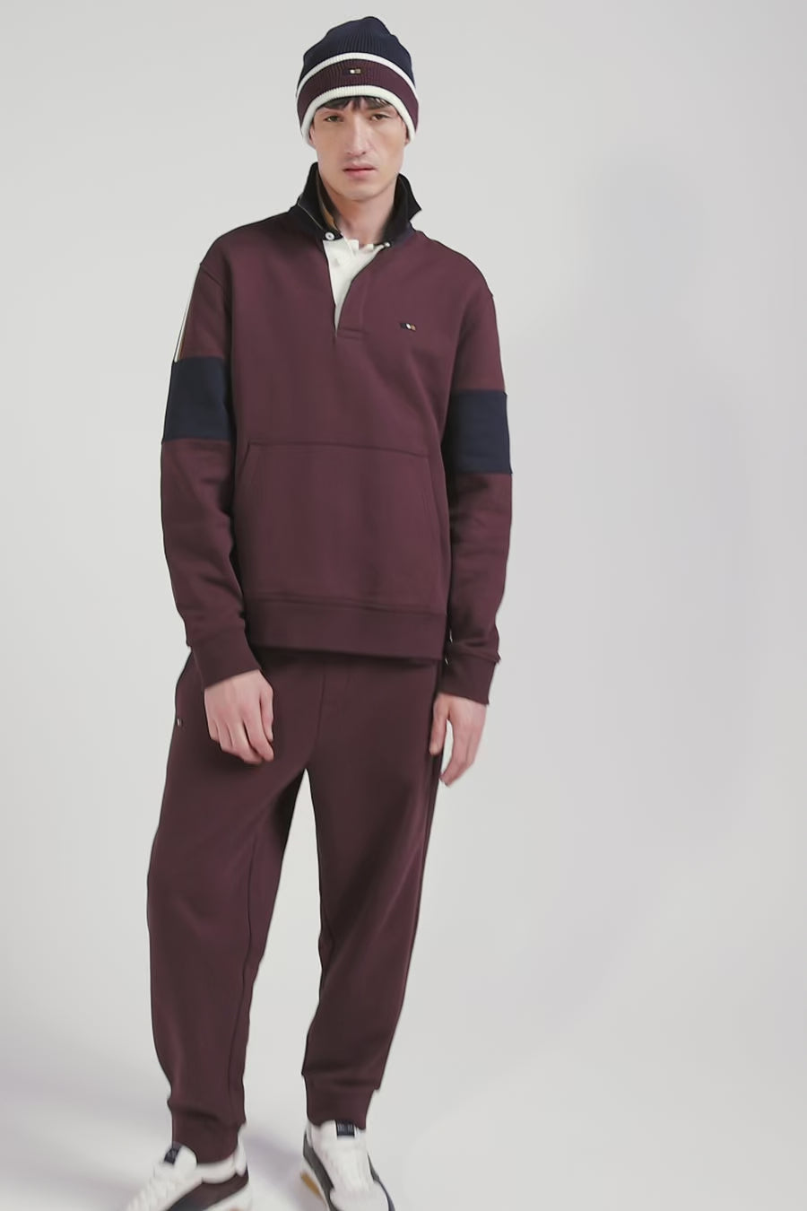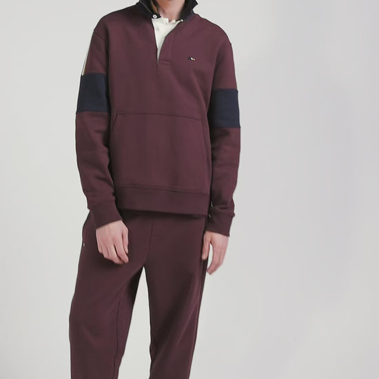 Relaxed burgundy cotton sweatshirt with rugby shirt collar