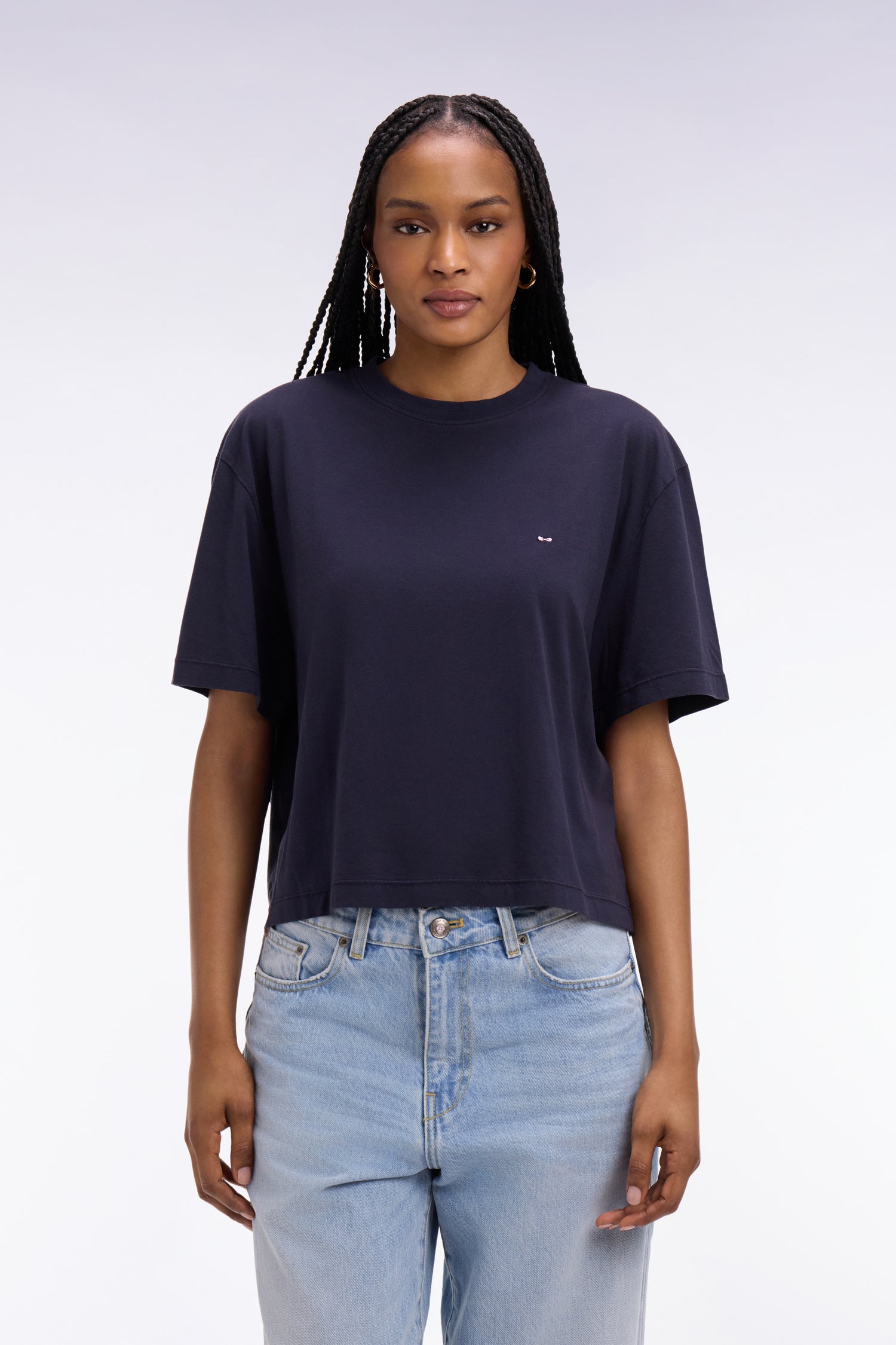 T-shirt à manches courtes en lyocell et coton marine coupe oversized