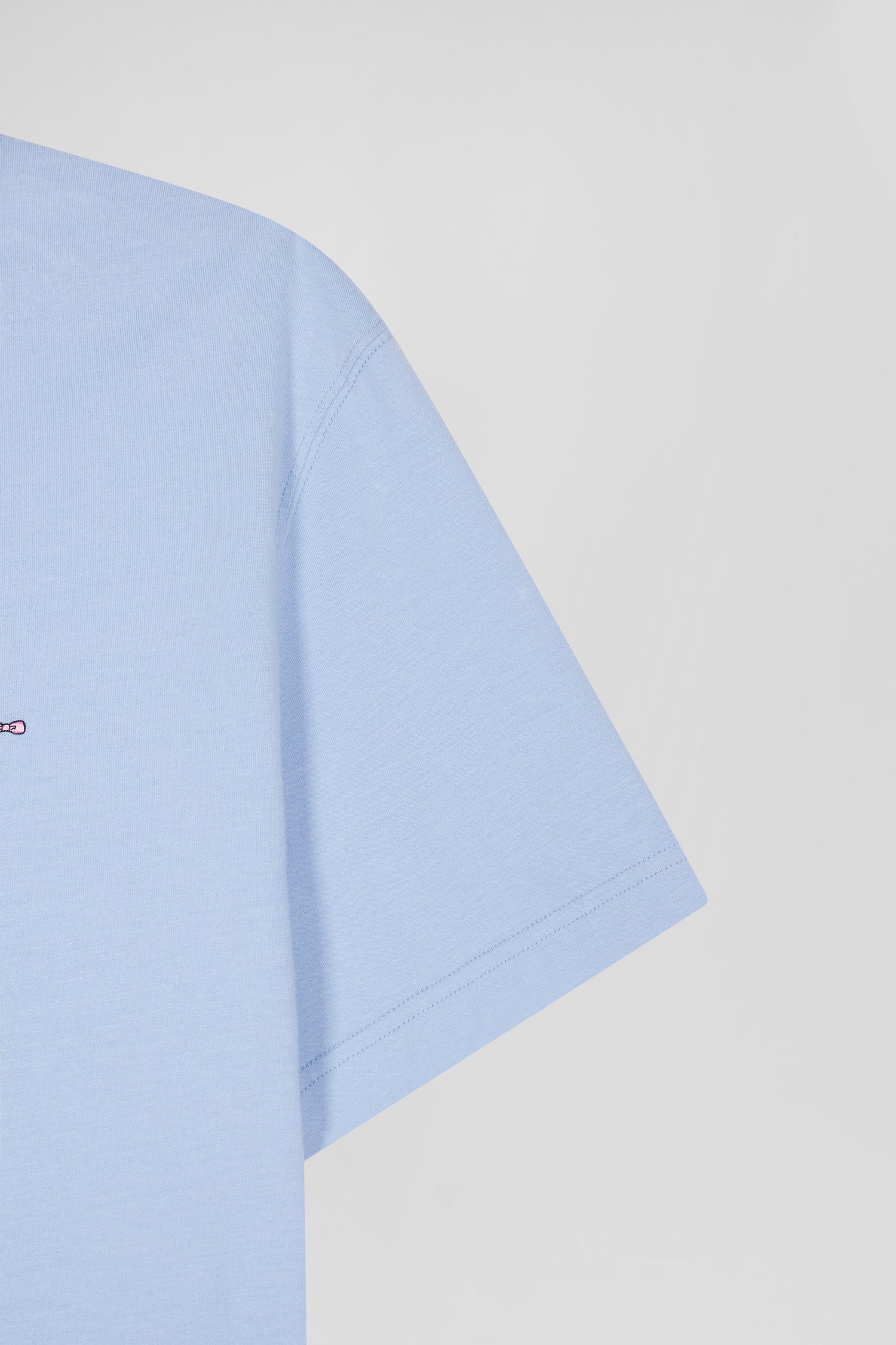 Regular sky blue short-sleeved cotton T-shirt with back patch