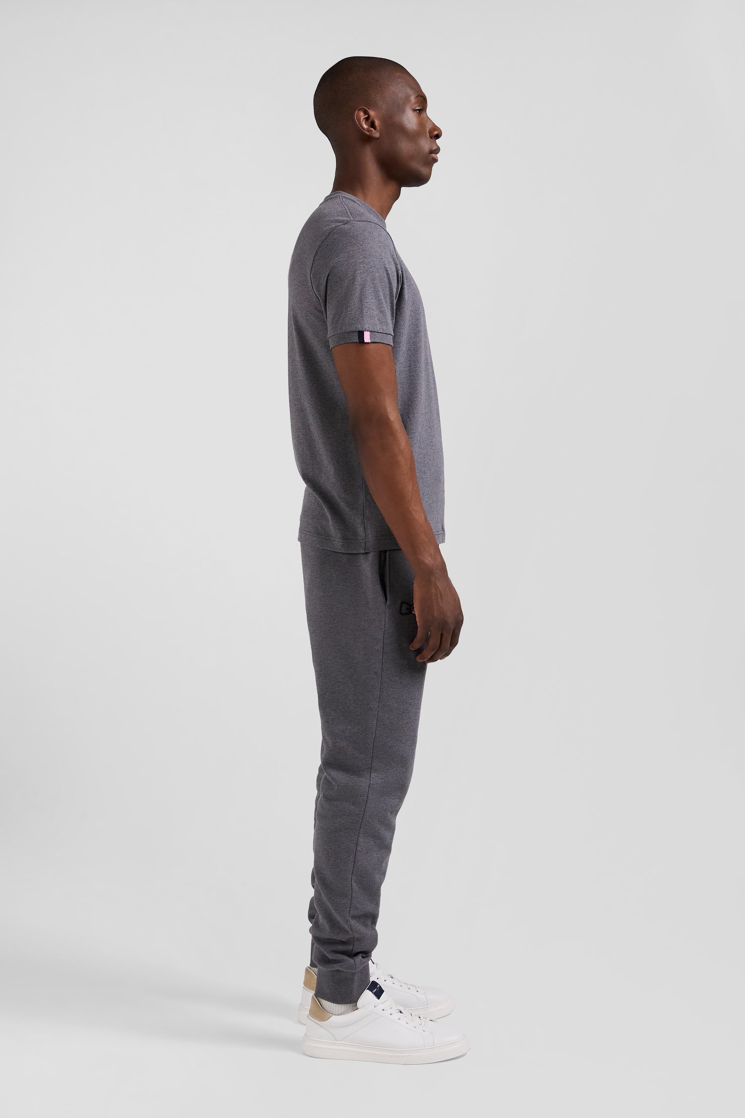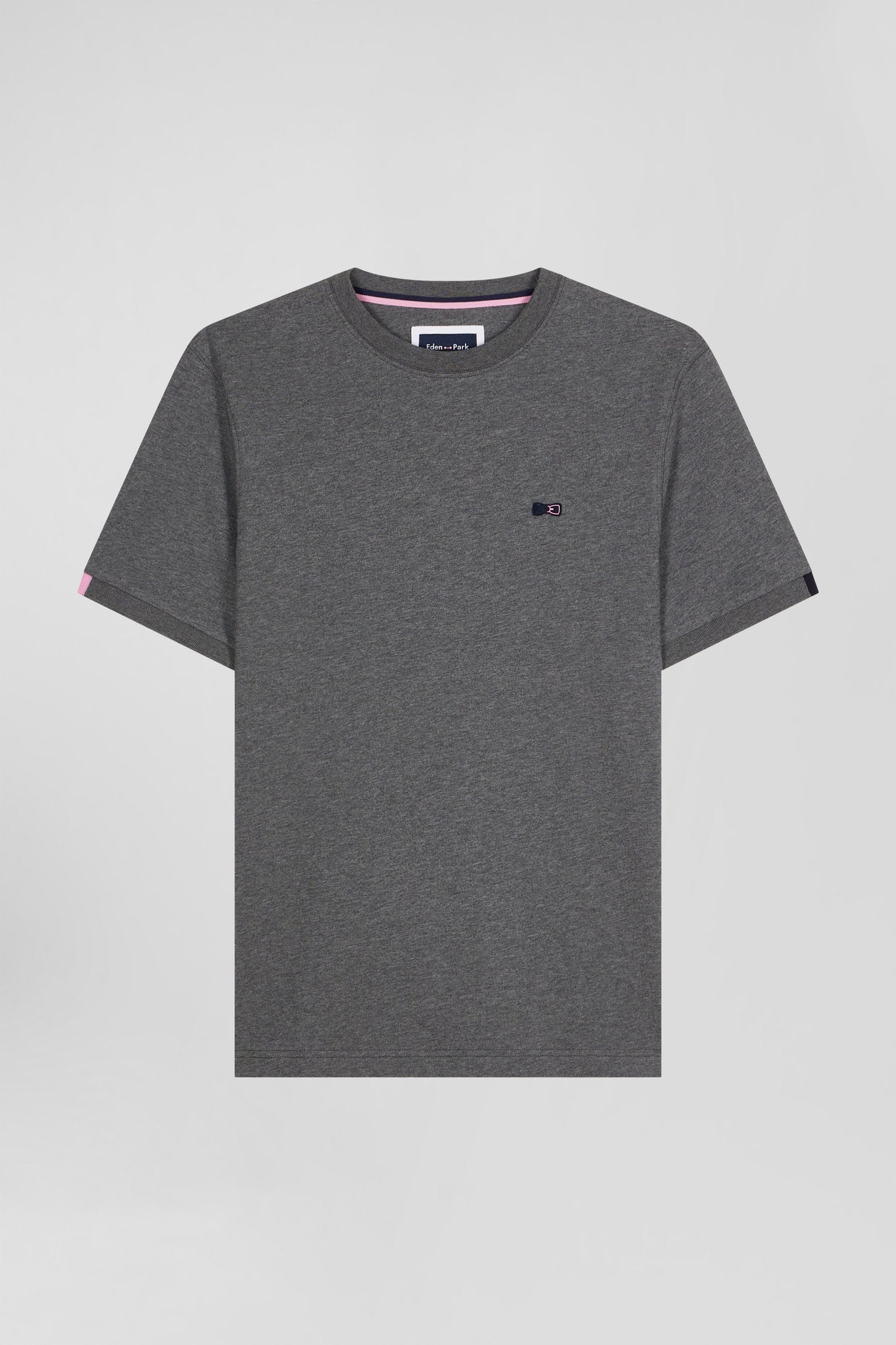 Regular grey short-sleeved cotton T-shirt with emblem embroidery