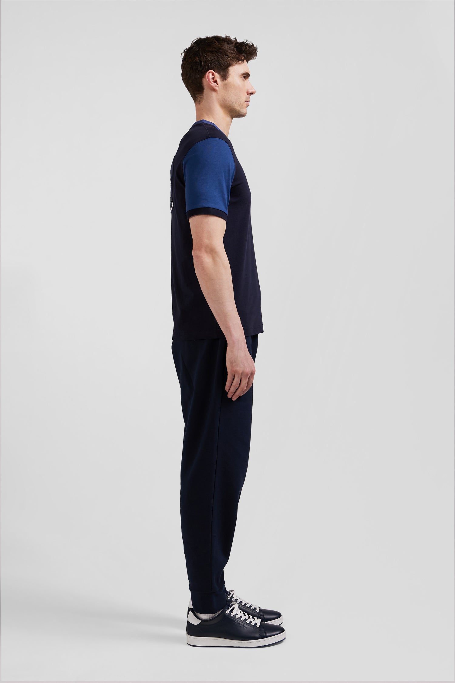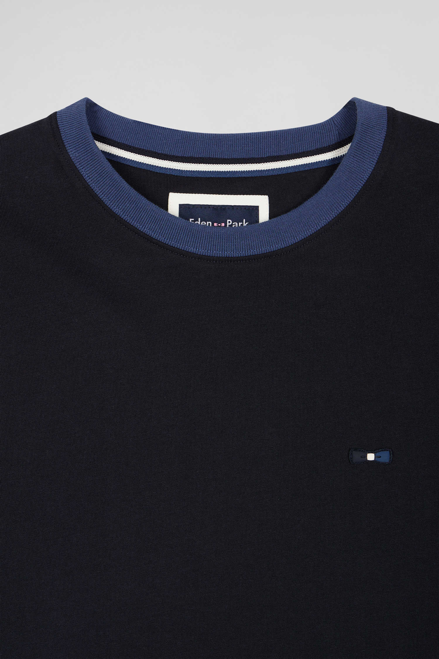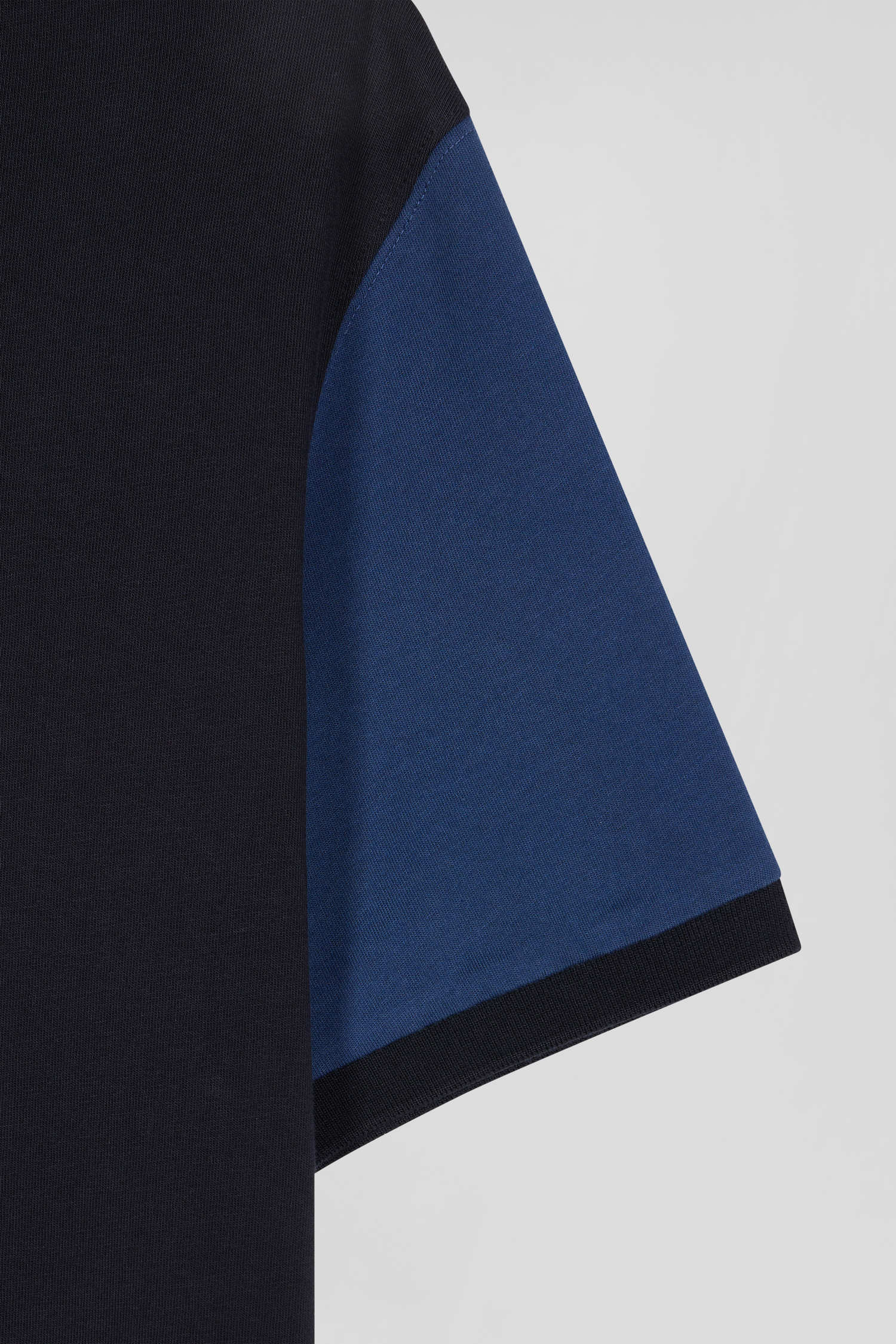 Regular navy blue cotton T-shirt with short contrasting sleeves