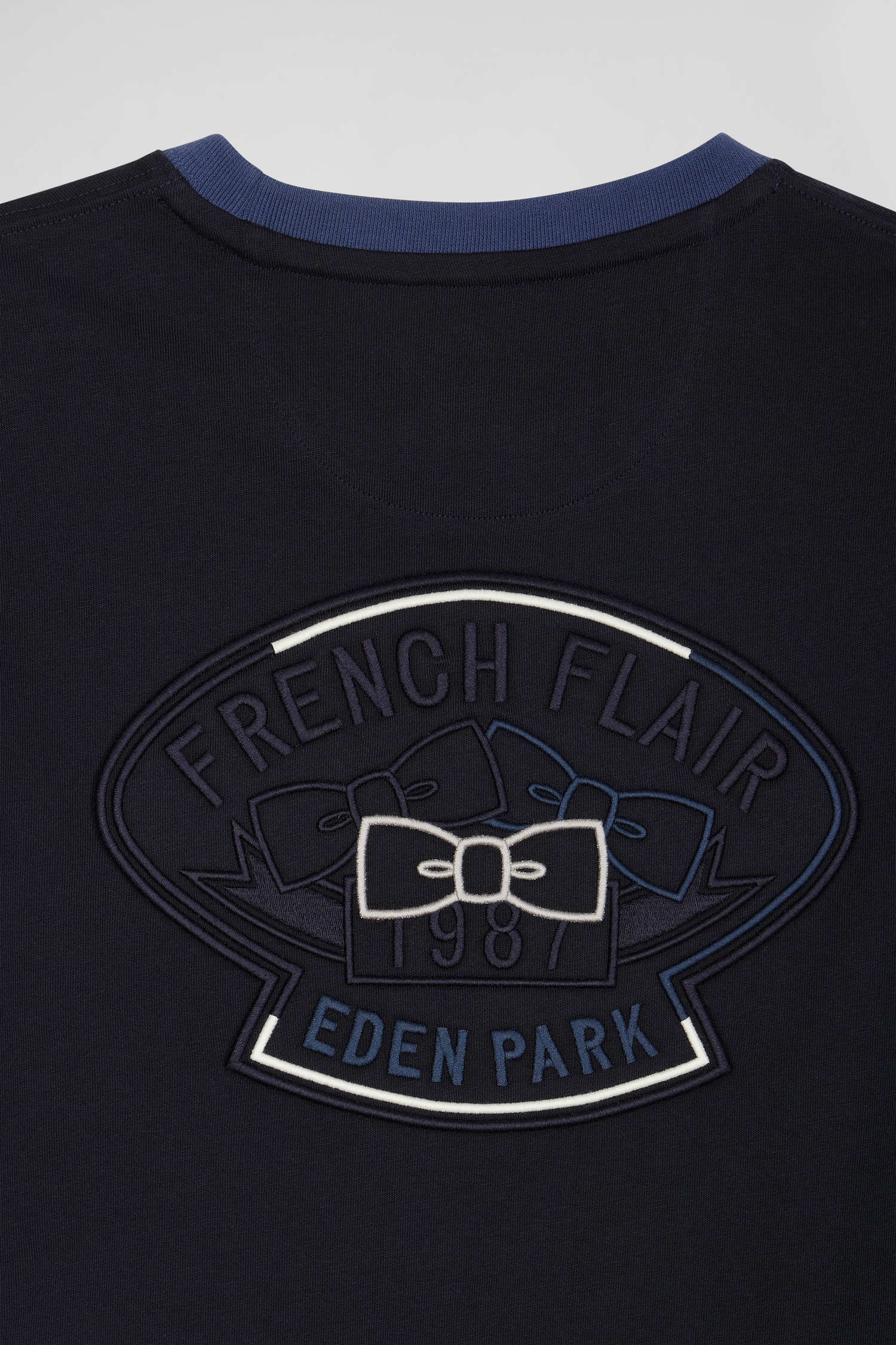 • Embroidered chest bow tie emblem