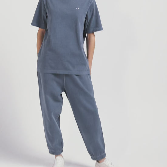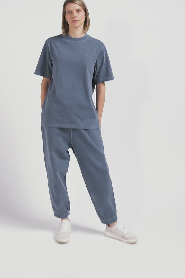 For this range of unisex T-shirts, our House has perfected an over-dyeing process to give a slightly vintage effect to the cotton jersey. Available in pastel colors, this loose-fitting oversized model can be worn in monochrome with matching jogging pants.