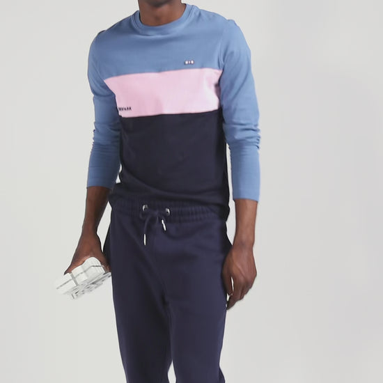 The colorblock, inspired by rugby jerseys, has become a signature of the Eden Park wardrobe. For autumn/winter, our House tastefully combines its iconic colors on a comfortable long-sleeved cotton jersey T-shirt.