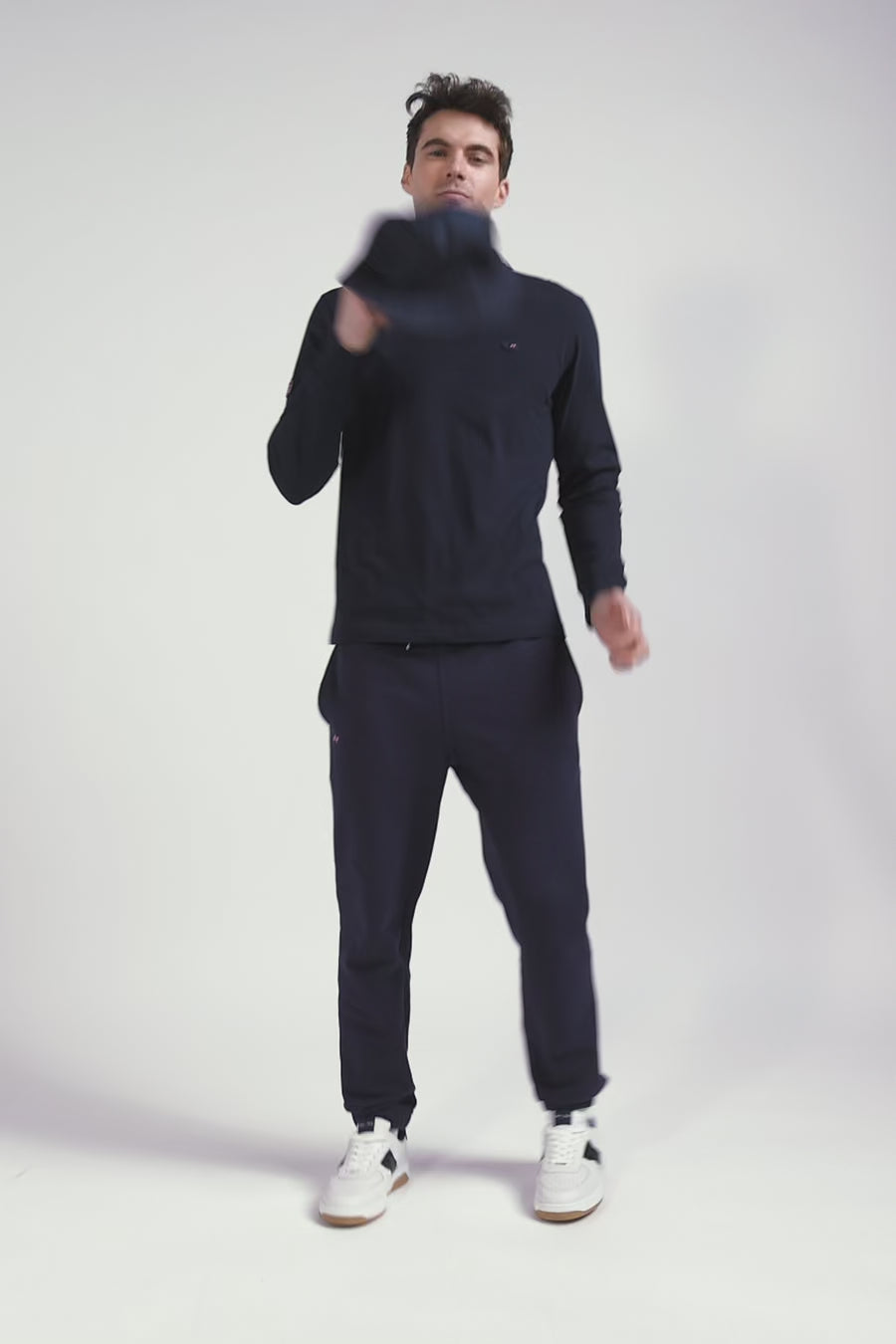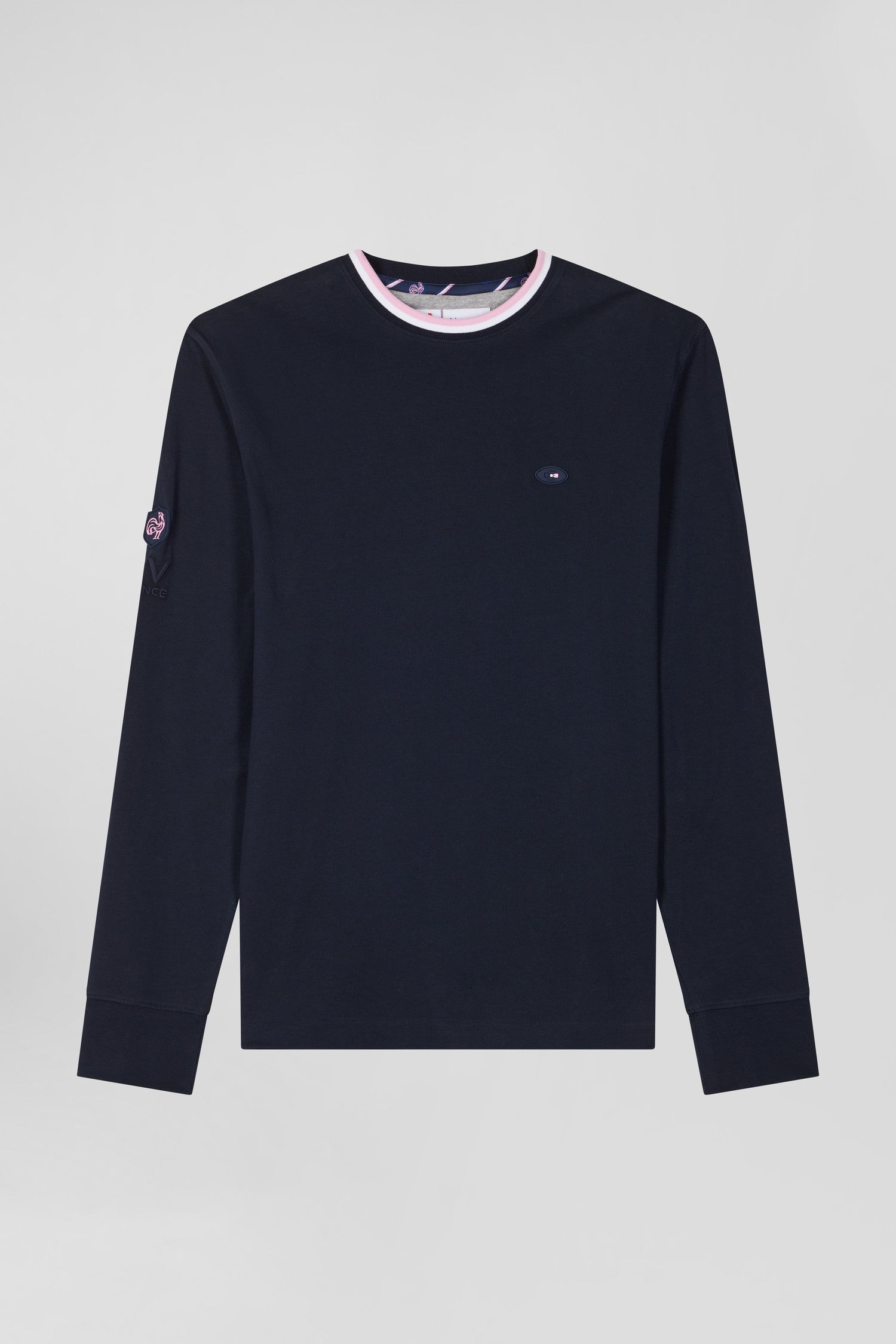 Regular navy blue XV de France long-sleeved cotton T-shirt